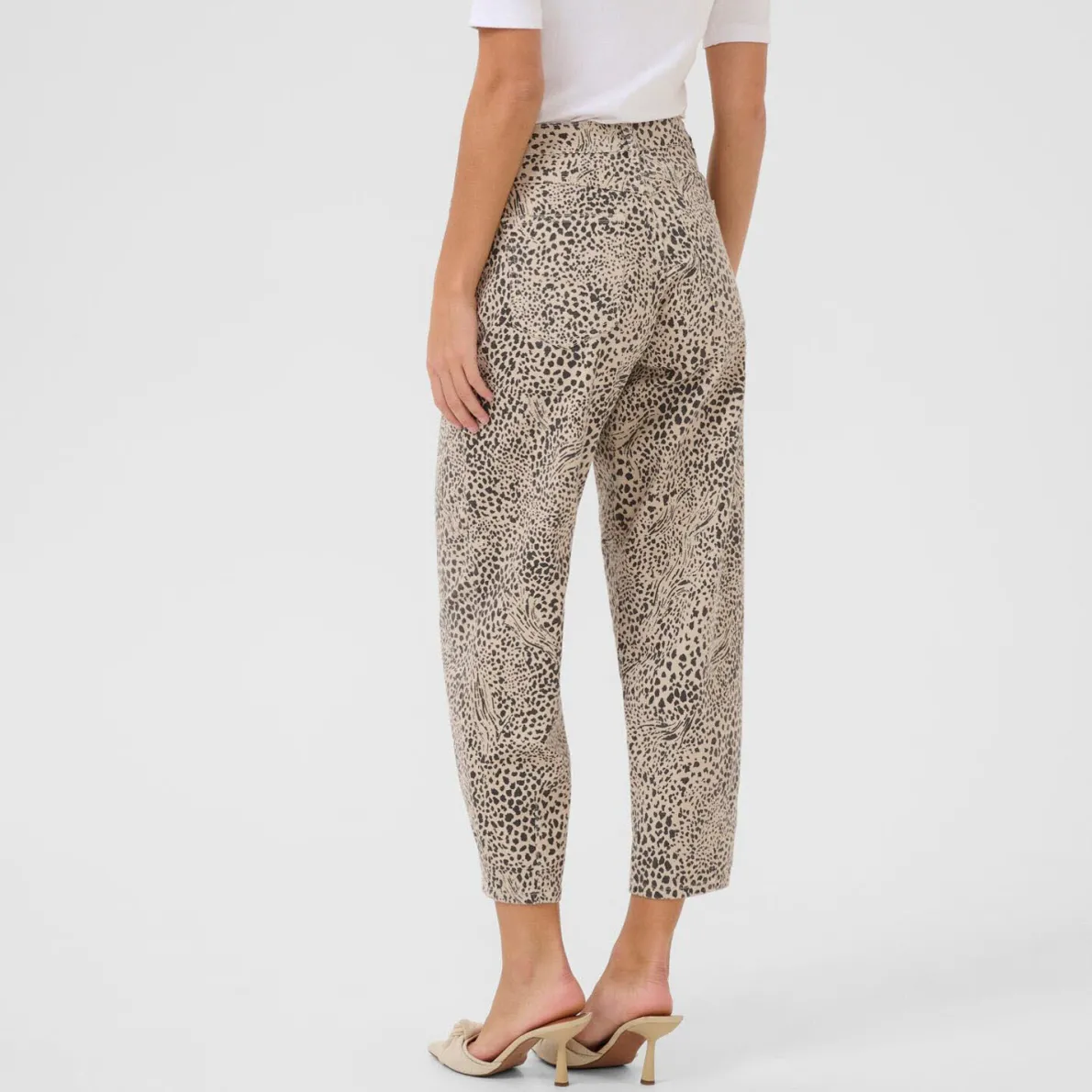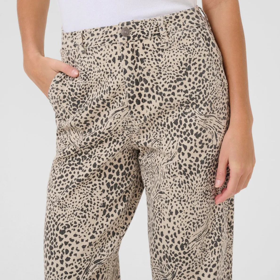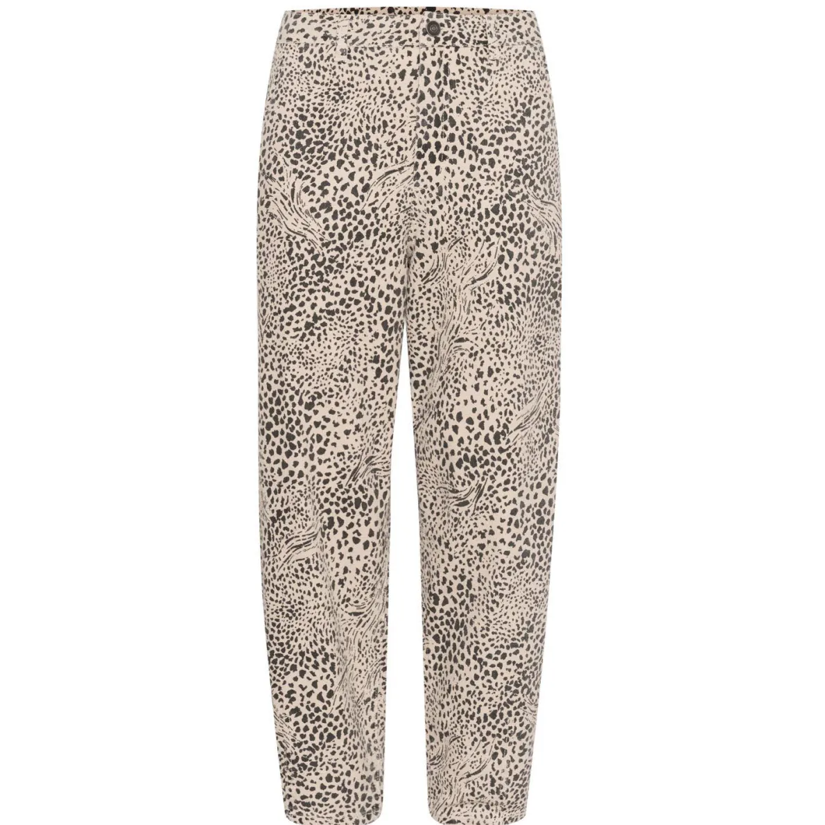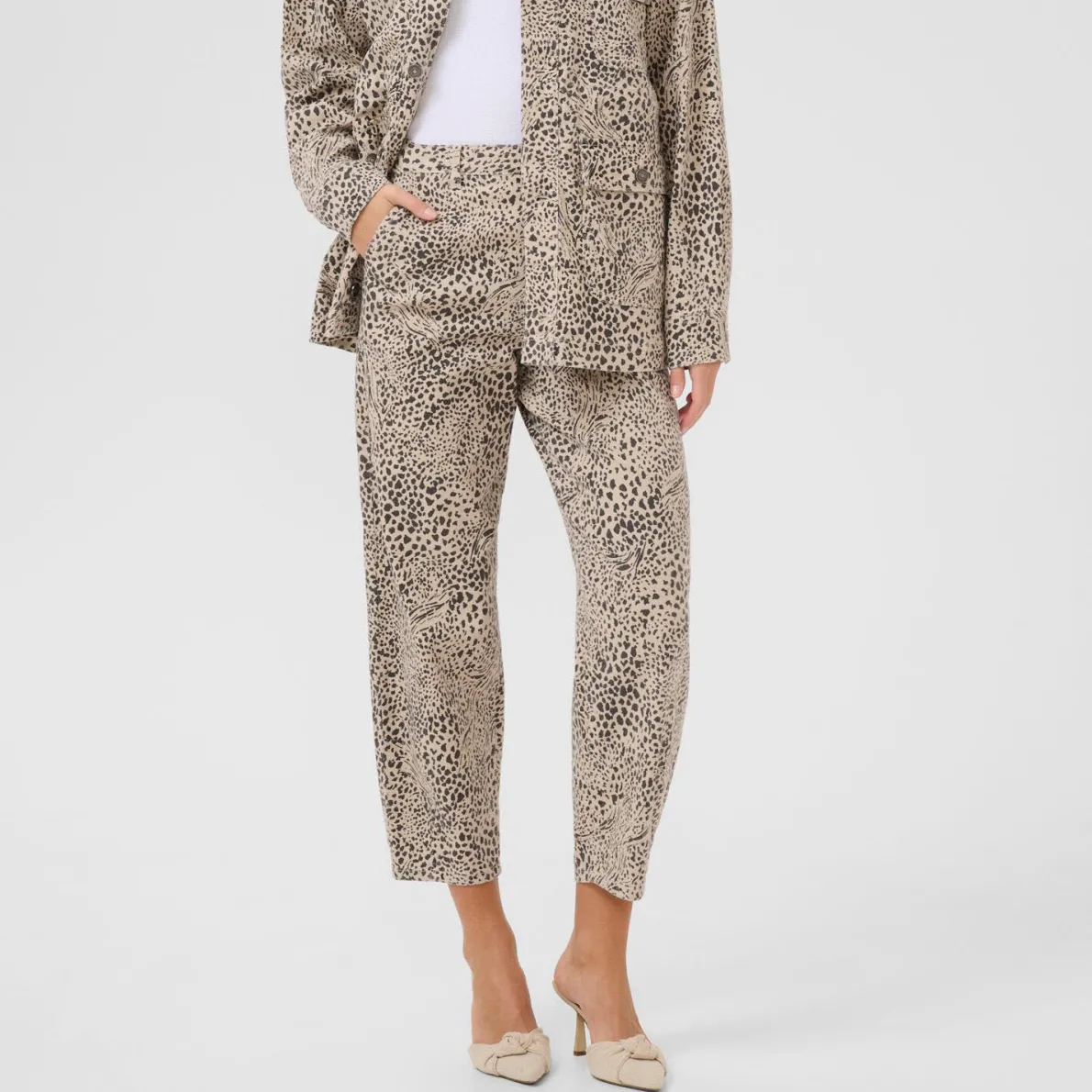 Ein Must Have für die Saison ist die schöne KAlisa Cropped Jeans für Damen vom Trendlabel Kaffe. Das Baumwolle Mischgewebe ist mit einem angesagten Leo Animal Print in Braun versehen. Sie hat eine hohe Taille ist Regular Fit geschnitten und mit Gürtelschlaufen versehen.