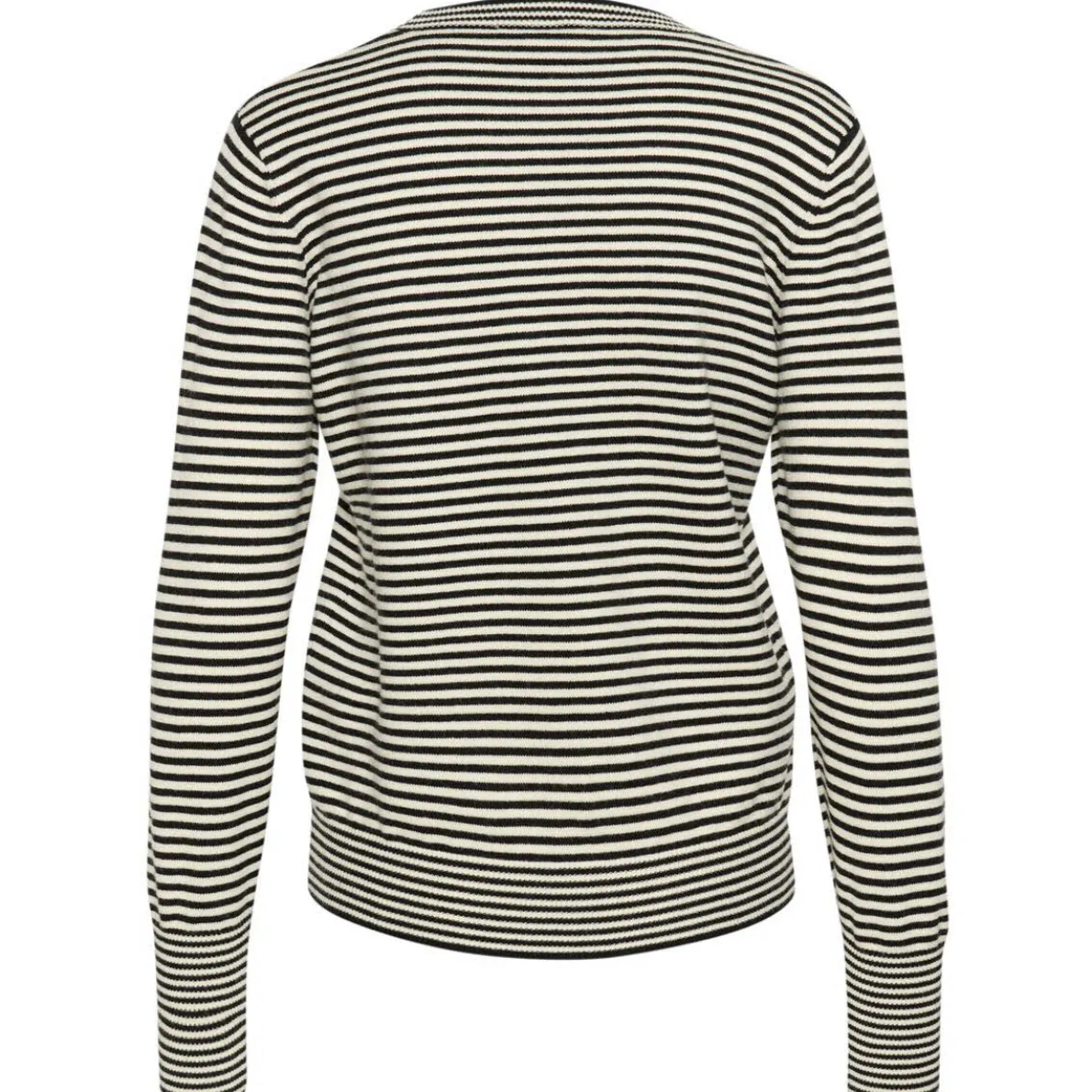 Er wurde aus einem hochwertigen Mischgewebe in Beige mit Schwarz gefertigt und mit einem Streifen Muster versehen. Durch die Regular Fit Schnittform ist er super angenehm zu tragen und lässt sich vielseitig kombinieren. Er ist mit einem Rundhalsausschnitt und längen Ärmel gearbeitet.