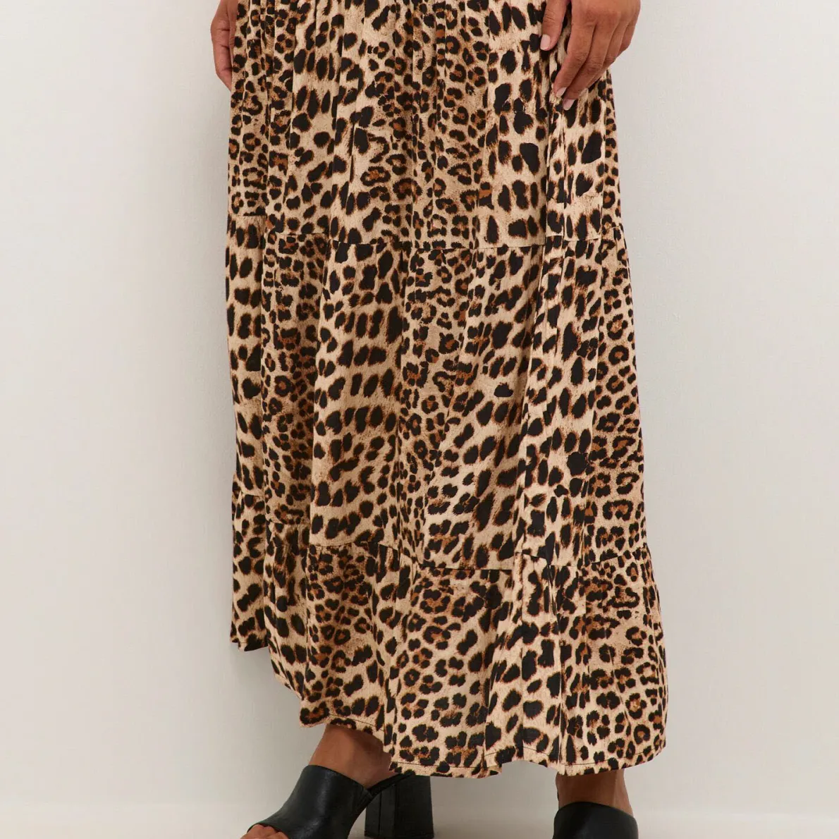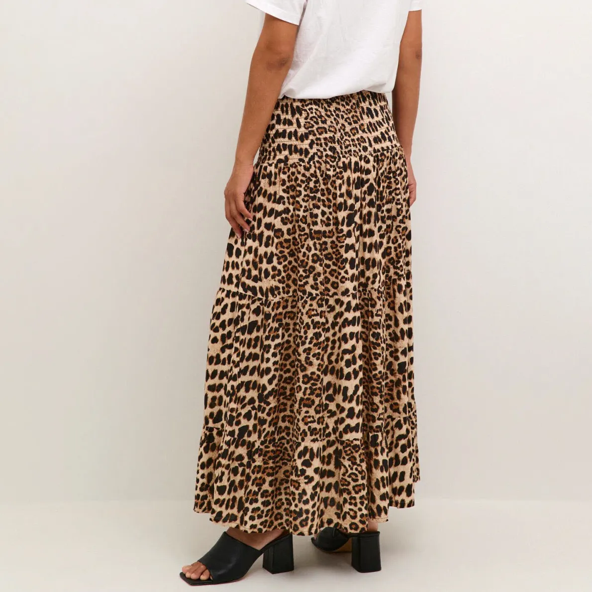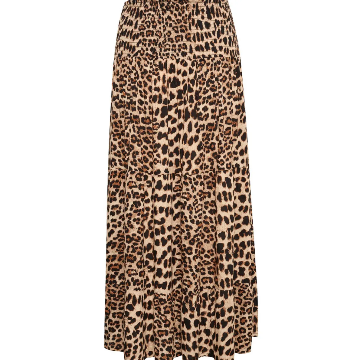 Der leichte Viskose Stoff ist mit einem Leo Animal Print in Braun verziert. Er hat eine elastische Taille und ist in A-Linie gearbeitet. Er ist lang geschnitten und für uns ein Must Have für den Sommer den du super kombinieren kannst.