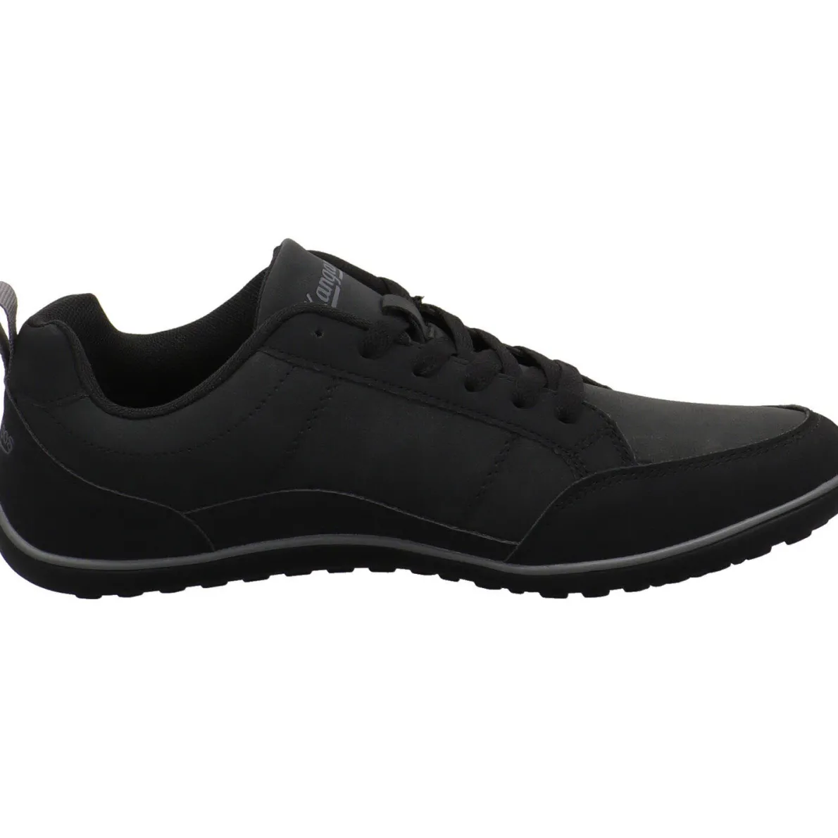 Das Barefoot Modell wurde aus Kunstleder in Schwarz gefertigt und mit farblichen Akzenten in Grau versehen. Durch die Schnürung und die Lasche am Schaft ist der Einstieg ganz einfach.