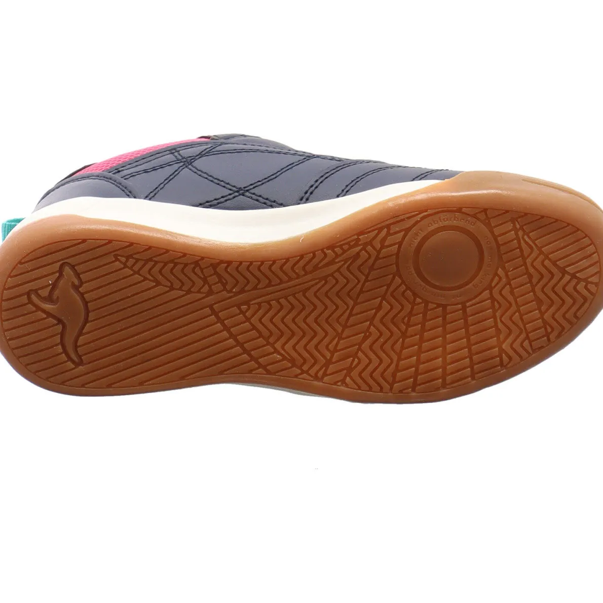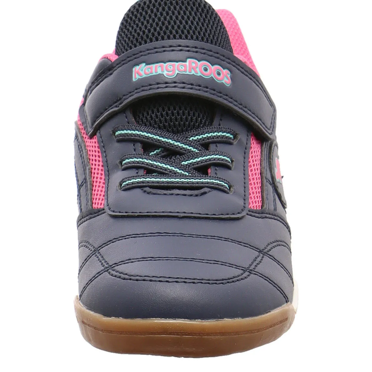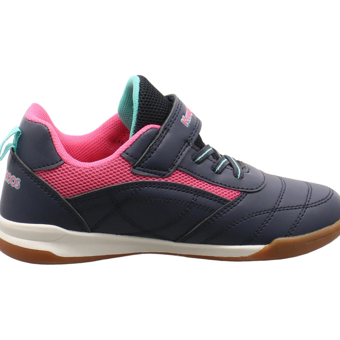 Der Kinder Hallenschuh wurde aus Kunstleder in Blau gearbeitet. Die Zunge und seitliche Parts sind aus Textil. Akzente in Pink lassen Mädchen Herzen höher schlagen. Durch die Textillasche, die Gummischnürung und den Klettverschluss ist das An- und Ausziehen ein Kinderspiel. Das Textil Innenfutter und der gepolsterte Schaft sorgen für ein angenehmes Tragegefühl und die Innensohle ist als Wechselfußbett gearbeitet. So kann der Schuh, nach dem Schulsport gut gelüftet werden und du kannst mit der Roos Fit Markierung die optimale Größe für dein Kind finden. Mit der hellen non marking Gummilaufsohle ist er ideal für die Sporthalle. Ob für die Schule oder den Vereinssport, ein toller Sneaker für coole Kids.