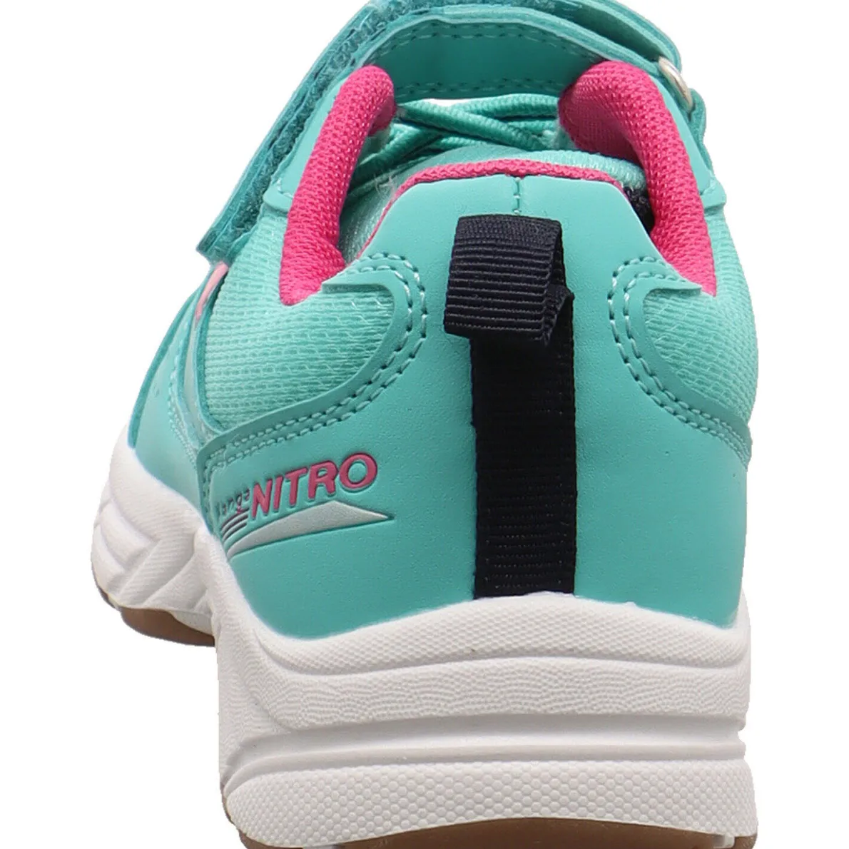 Der K-NI Keno EV von Kangaroos in Türkis Blau mit Akzenten in Pink ist ein schöner Kinder Hallenschuh für Mädchen.