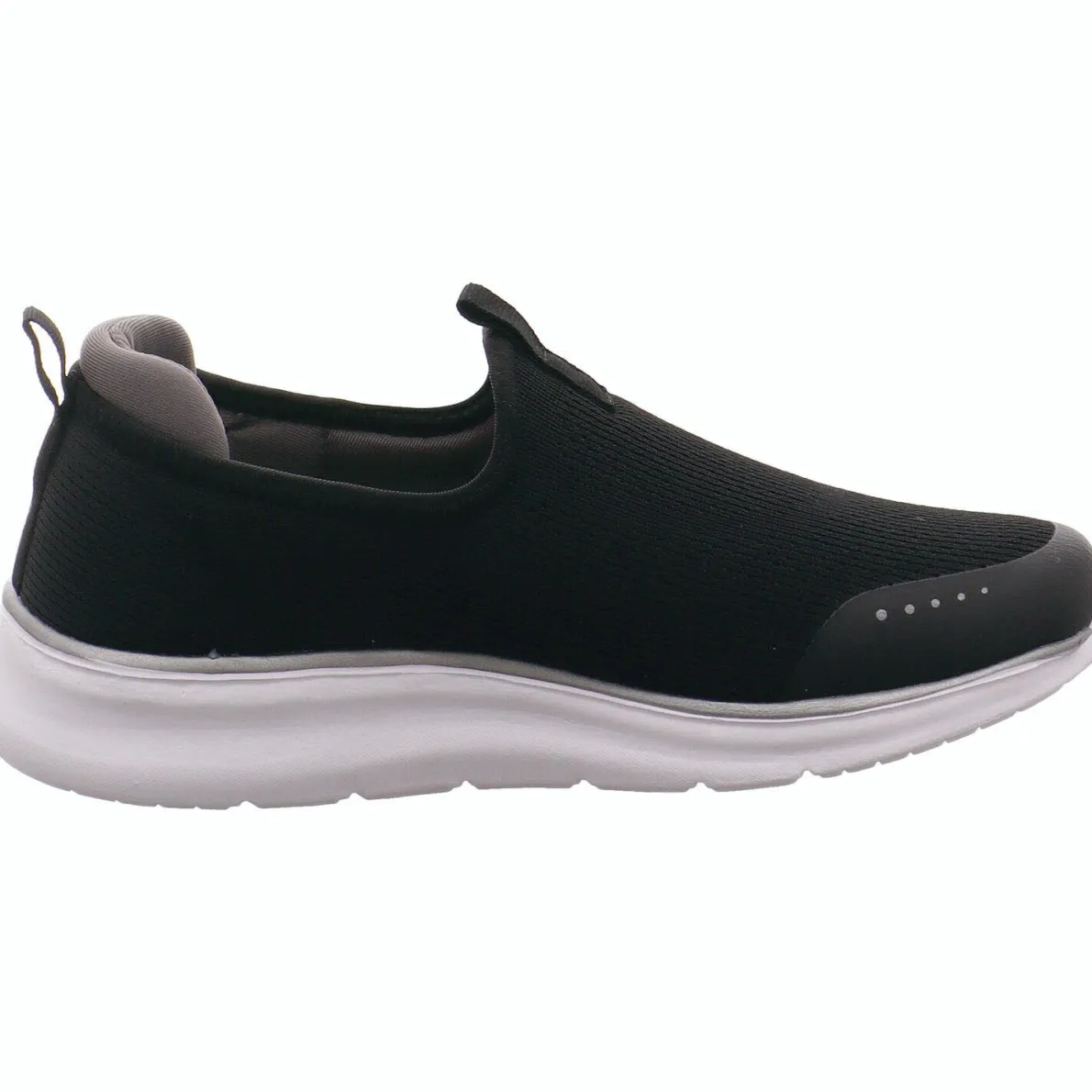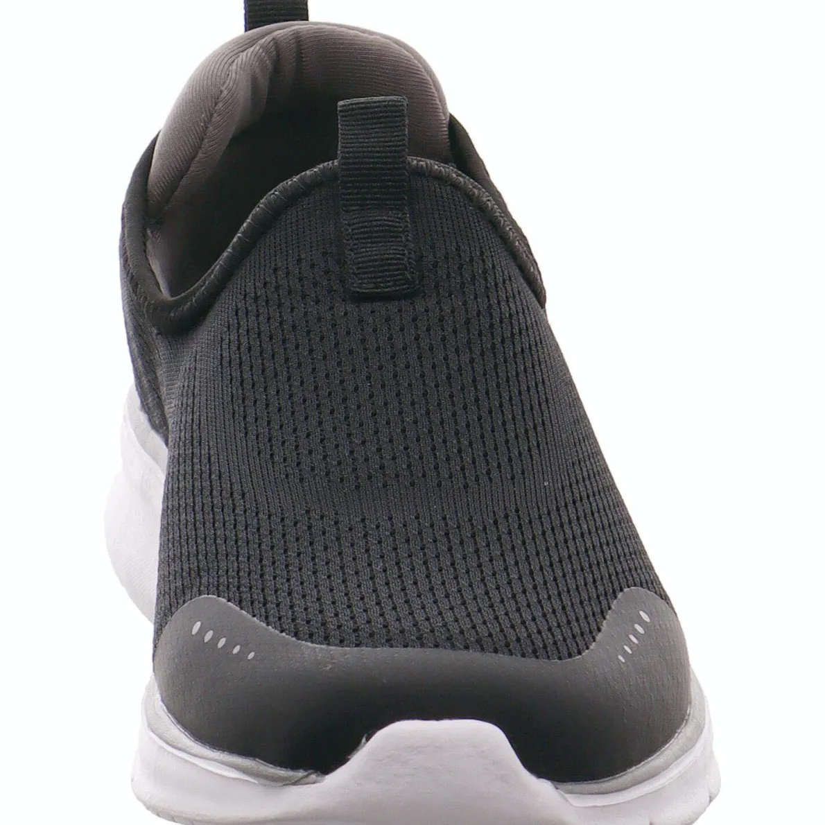 Geferigt aus Textil in Schwarz im Strick Look, ist er wunderbar weich und flexibel. Der Einsatz aus Kunstleder an der Schuhspitze verstärkt diese und macht sie strapazierfähig. Das Band an der Ferse hilft bei einem leichten Einstieg.
