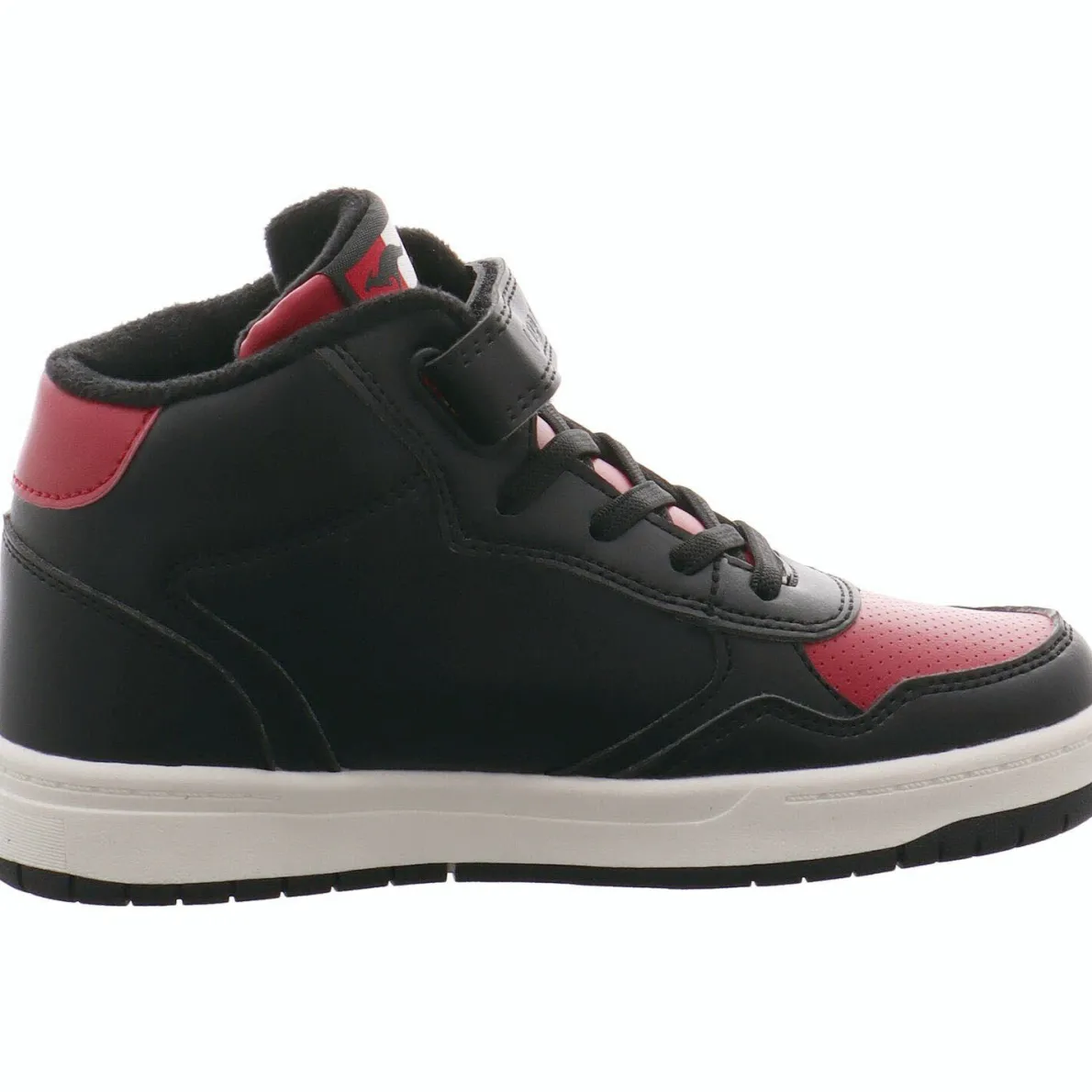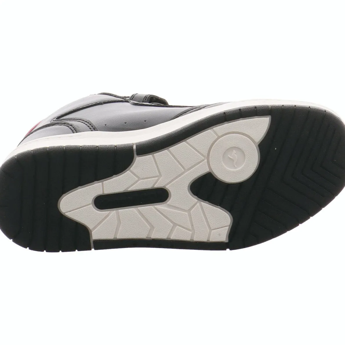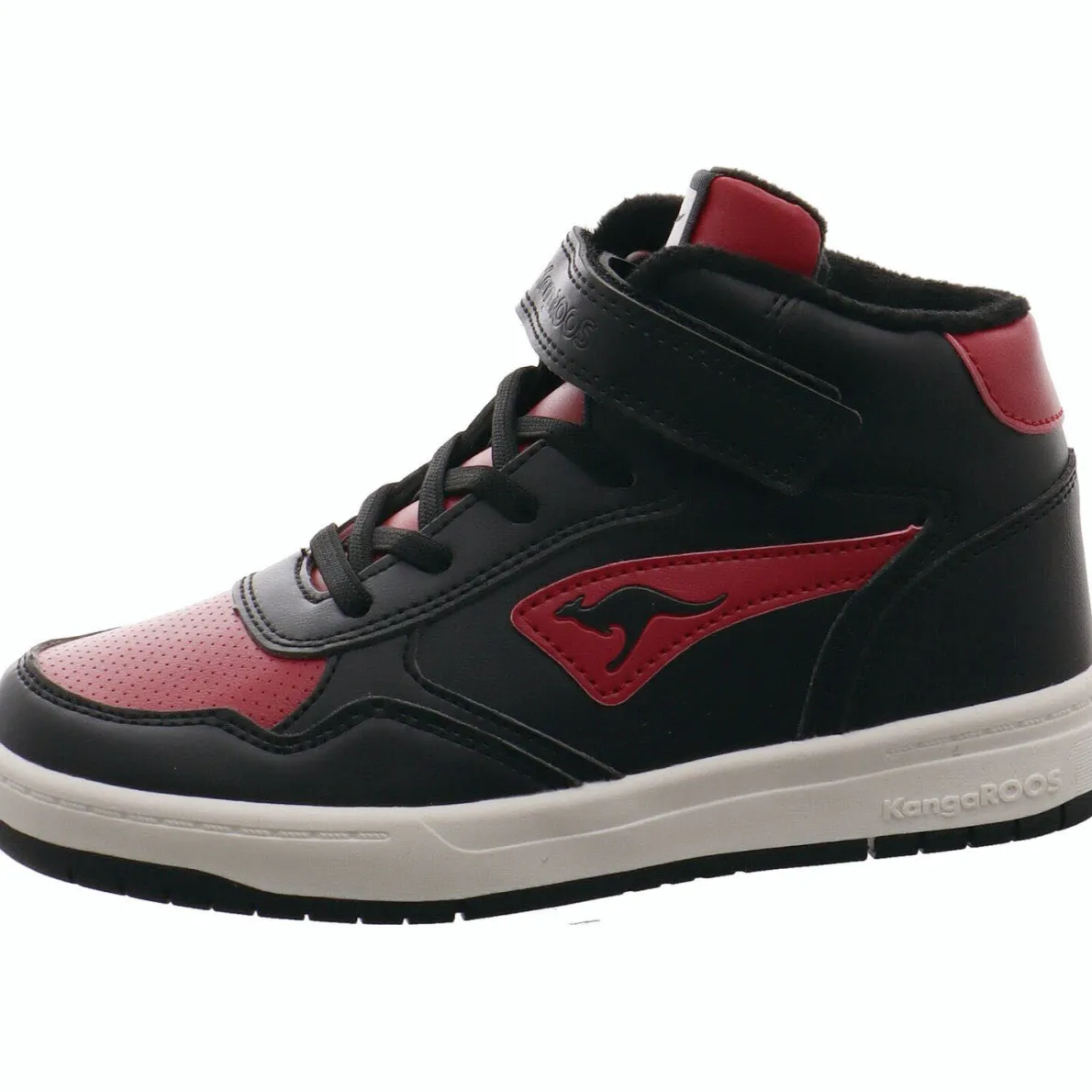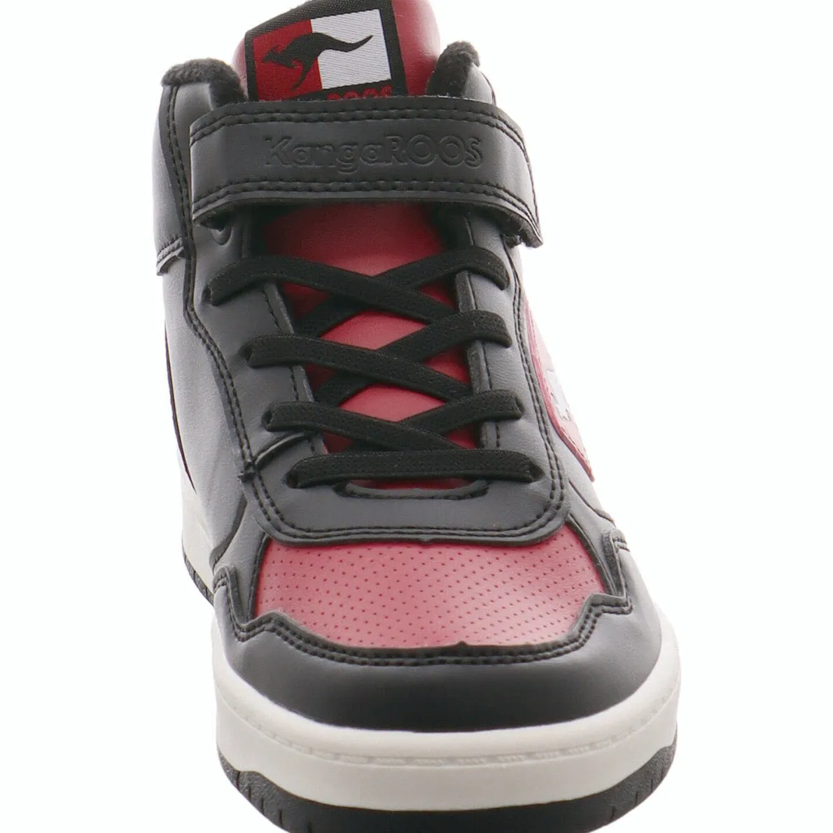 Der K-CP Jumbo EV von Kangaroos ist ein trendiger Kinder Hightop Sneaker aus einem Mix aus Schwarz und dunklem Rot.