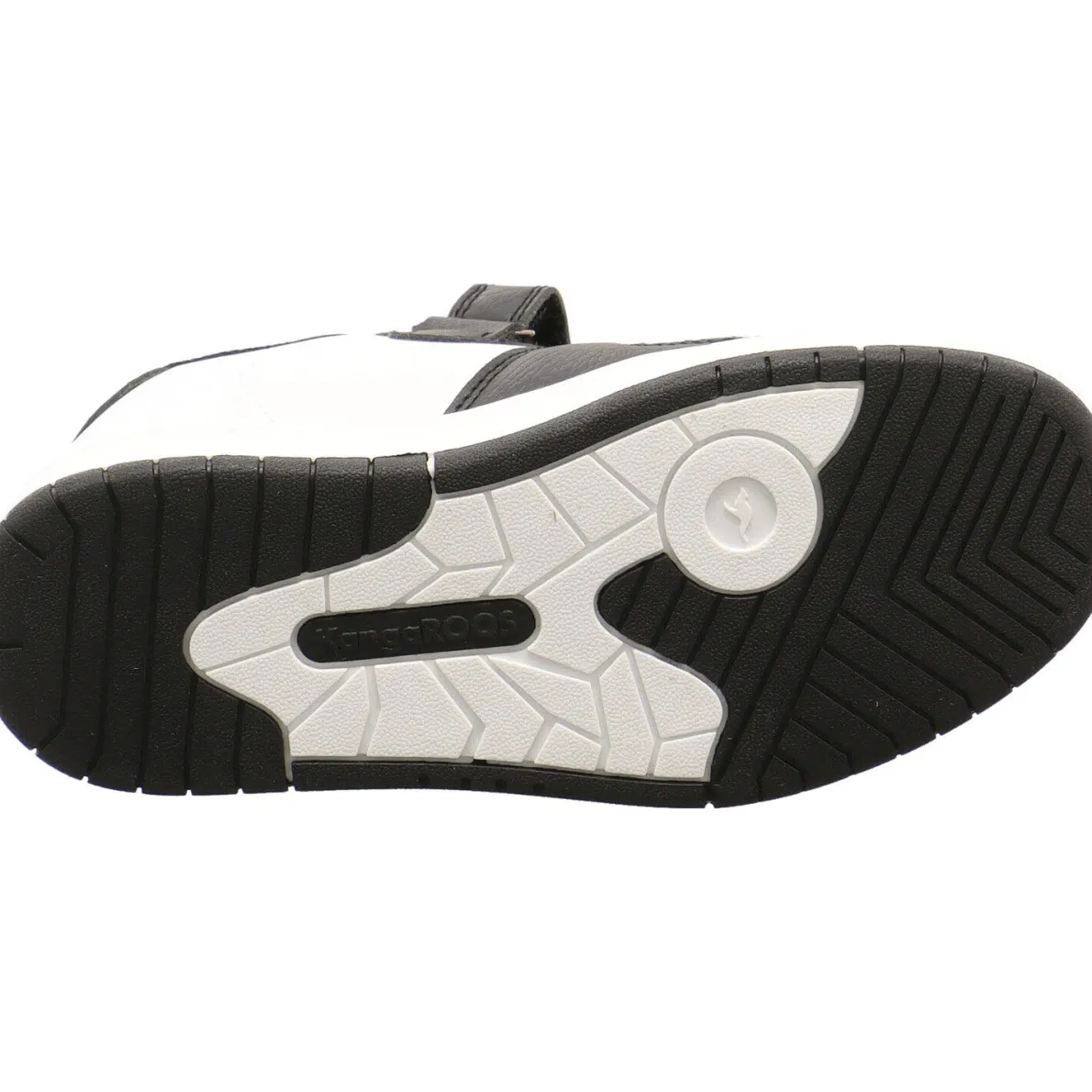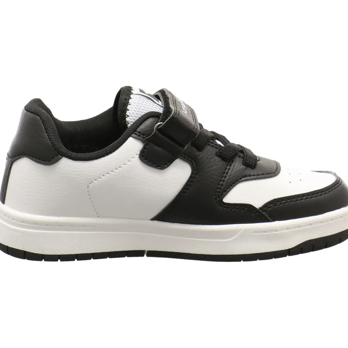 Das Obermaterial aus einem tollen Mix aus Textil und Kunstleder, erscheint im Retro Look mit einer tollen Farbkombination aus Schwarz und Weiß. Die Zunge und der Schaft aus Textil Mesh sind angenehm zu Tragen und mit dem Klettverschluss und der Gummischnürung ist der Einstieg ganz einfach. Die Innensohle ist als Wechselfußbett gearbeitet und dank der Roos Fit Größenkennzeichnung, kannst du die optimale Größe herausfinden.