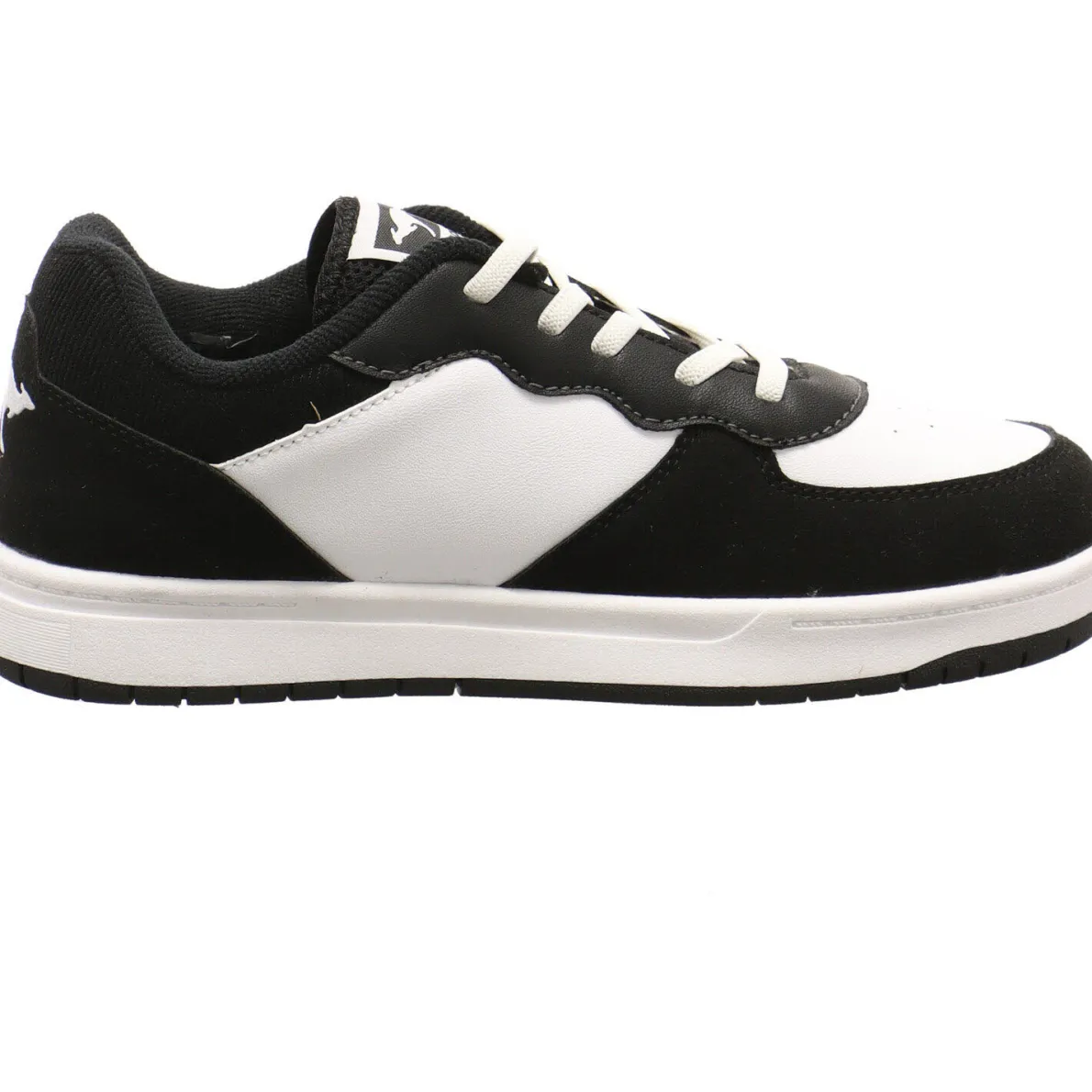 Das Obermaterial aus einem tollen Mix aus Textil und Kunstleder, erscheint im Retro Look mit einer tollen Farbkombination aus Schwarz und Weiß. Die Zunge und der Schaft sind super weich gepolstert und mit der Schnürung kann er optimal an den Fuß angepasst werden. Die Innensohle ist als Wechselfußbett gearbeitet und dank der Roos Fit Größenkennzeichnung, kannst du die optimale Größe herausfinden.