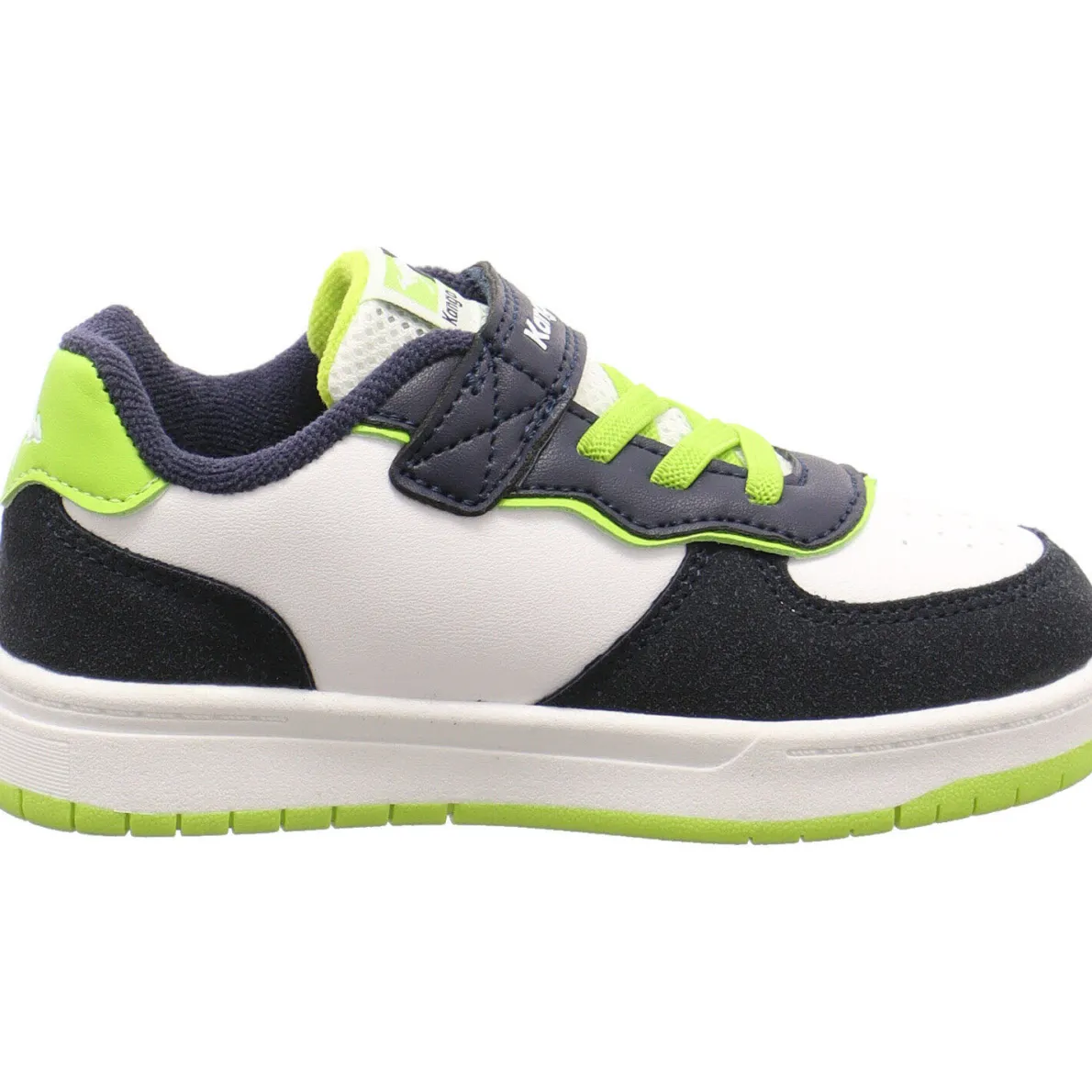 Die abriebfeste Gummilaufsohle sorgt für guten Grip und Haltbarkeit. Auch hier findest du auf der Innenseite der Zunge die typische Kangaroos Geheimtasche. Ein cooler Schuh für Kinder.