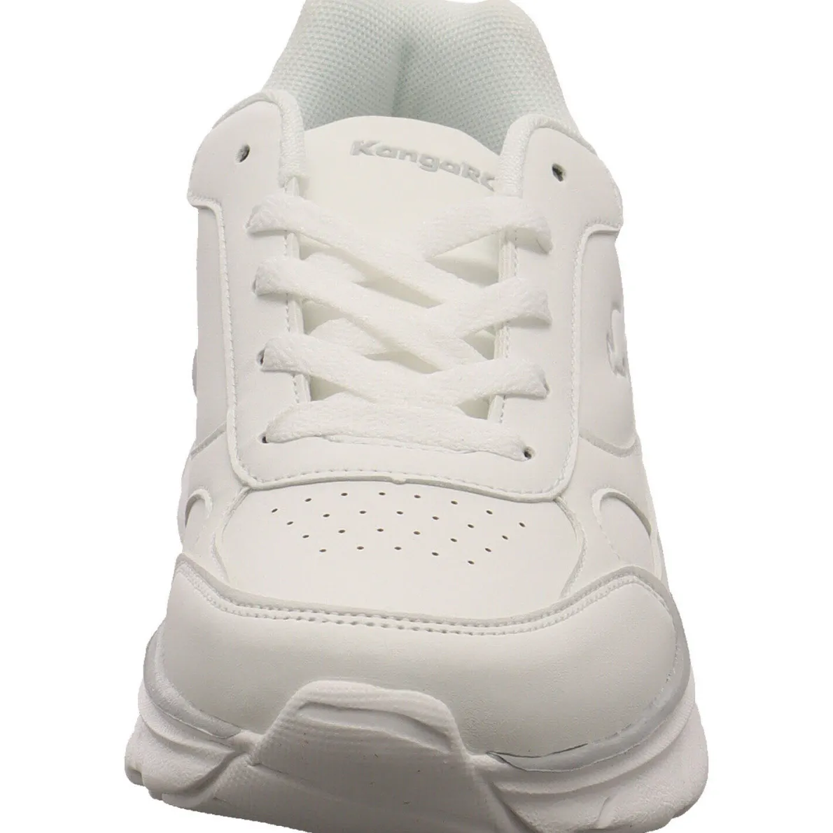 Der K-CR Adina ist ein sportlich, moderner Damen Sneaker von Kangaroos. Das Obermaterial aus Kunstleder in Weiß mit Details in Grau wirkt sportiv und ist mit einer dezenten Prägung versehen. Eine Lasche an der Ferse und die Schnürung helfen bei einem leichten Einstieg. Die Gummilaufsohle ist leicht profiliert und dadurch rutschhemmend. Natürlich fehlt auch nicht die kleine versteckte Tasche unter der Zunge, praktisch um etwas Kleingeld oder einen Schlüssel zu verstauen.