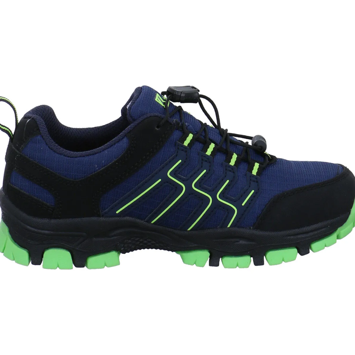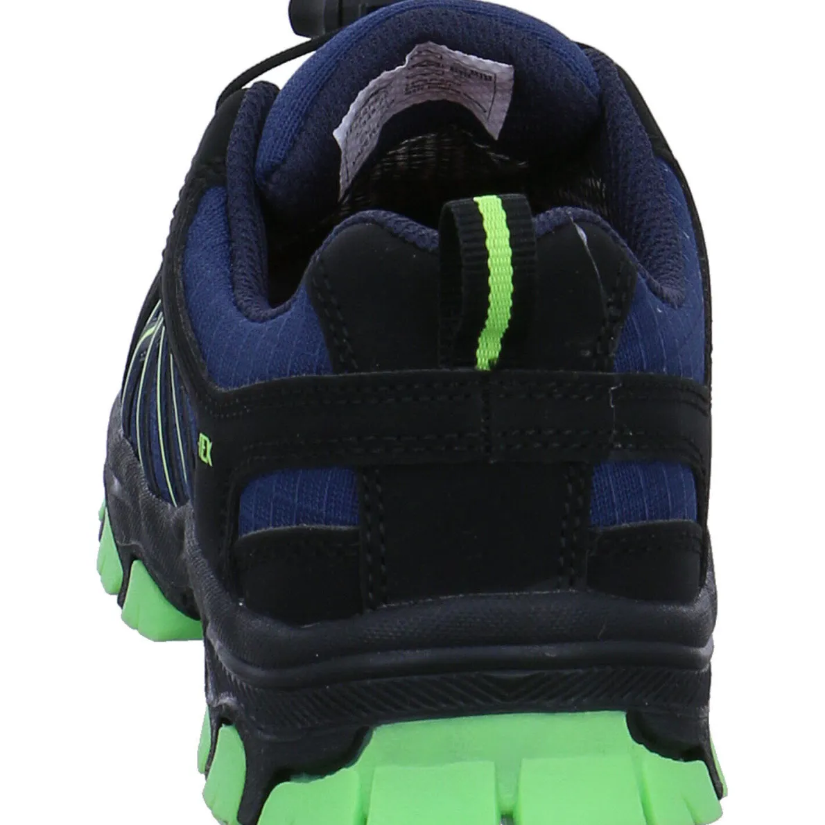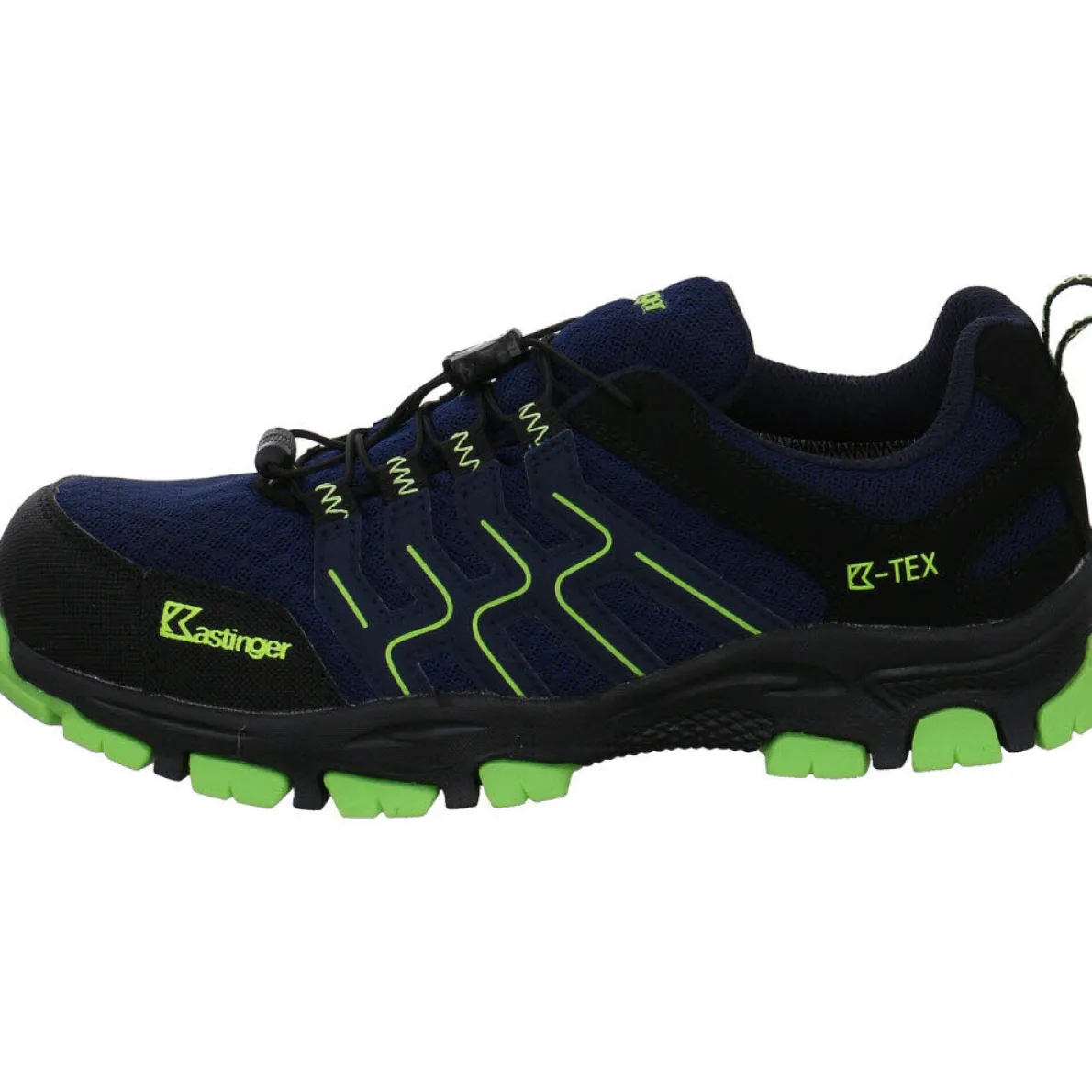 Gefertigt aus einem Mix aus Kunstleder und Textil Mesh in Blau, Schwarz und Grün ist die Schuhspitze und Ferse verstärkt, wodurch der Schuh besonders robust ist. Die K-Tex Ausstattung macht den Schuh zudem wasserdicht und atmungsaktiv.