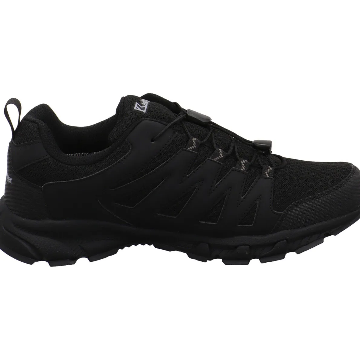 Der Herren Outdoorschuh wurde aus einem Mix aus Kunstleder und Textil in Schwarz mit Akzenten in Grau gearbeitet.