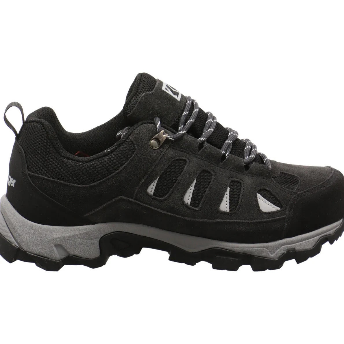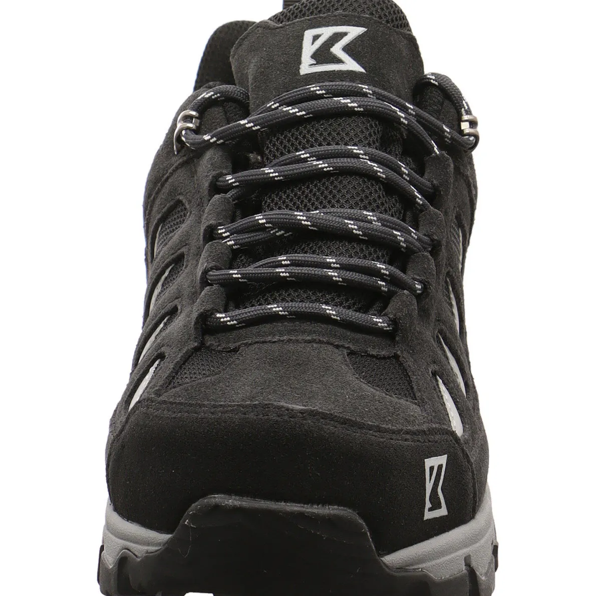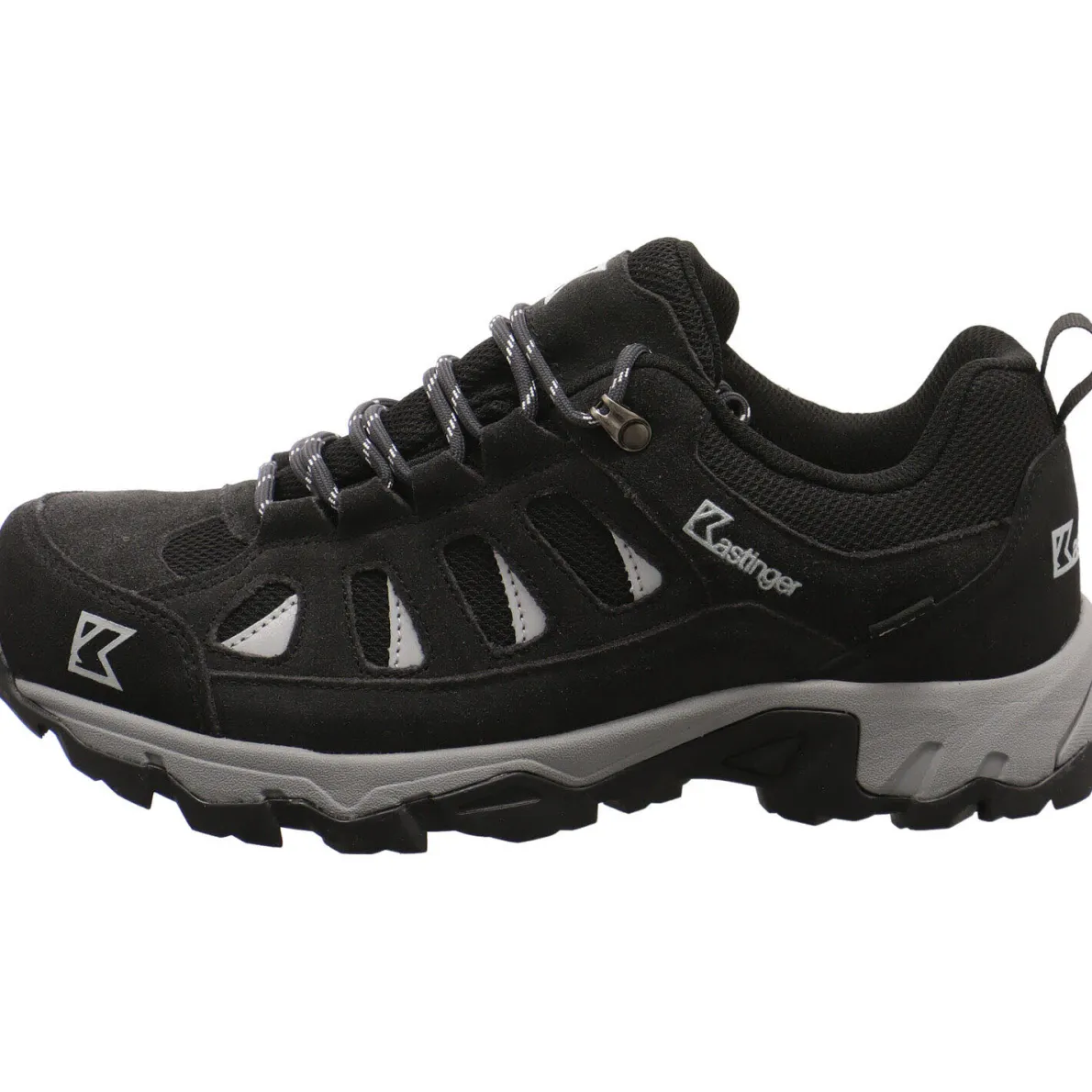 Der Ladschur Low KTX für Herren, von Kastinger ist bestens geeignet dafür. Das Obermaterial wurde aus einem gekonnten Mix aus Echtleder und Textil Mesh in Schwarz gefertigt. Reflektierende Einsätze sorgen für eine gute Sichtbarkeit. Die Schuhspitze und Ferse sind verstärkt und dadurch besonders robust. Der Schaft aber dennoch angenehm gepolstert. Mit der Textil Lasche und der Schnürung ist der Einstieg einfach und du kannst den Schuh noch optimal an deinen Fuß anpassen. Die K-CELL Einlegesohle ist gepolstert, herausnehmbar und sehr flexibel, durch Soft Cushion und verfügt über ein Size Control System. Die K-Tex Membran macht den Schuh wasserdicht und atmungsaktiv. Regen und nasse Wiesen halten dich also nicht auf. Die K-Grip-Außensohle sorgt für festen und sicheren Halt auch auf unwegsamen Gelände.