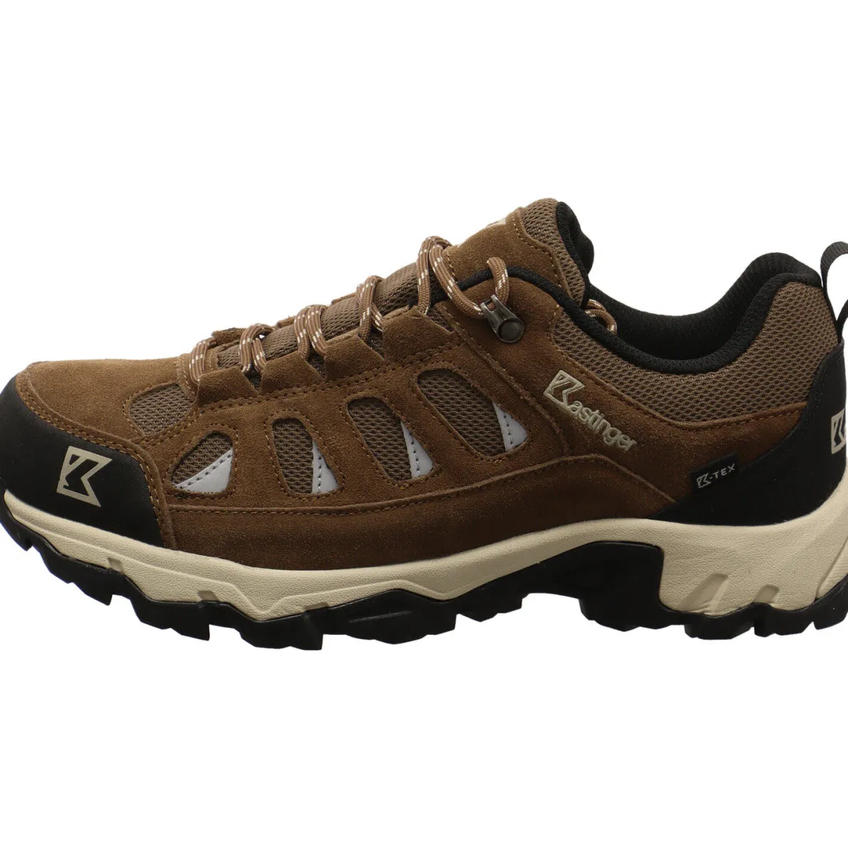 Der Ladschur Low KTX für Herren, von Kastinger ist bestens geeignet dafür. Das Obermaterial wurde aus einem gekonnten Mix aus Echtleder und Textil Mesh in Braun gefertigt. Reflektierende Einsätze sorgen für eine gute Sichtbarkeit. Die Schuhspitze und Ferse sind verstärkt und dadurch besonders robust. Der Schaft aber dennoch angenehm gepolstert. Mit der Textil Lasche und der Schnürung ist der Einstieg einfach und du kannst den Schuh noch optimal an deinen Fuß anpassen. Die K-CELL Einlegesohle ist gepolstert, herausnehmbar und sehr flexibel, durch Soft Cushion und verfügt über ein Size Control System. Die K-Tex Membran macht den Schuh wasserdicht und atmungsaktiv. Regen und nasse Wiesen halten dich also nicht auf. Die K-Grip-Außensohle sorgt für festen und sicheren Halt auch auf unwegsamen Gelände.