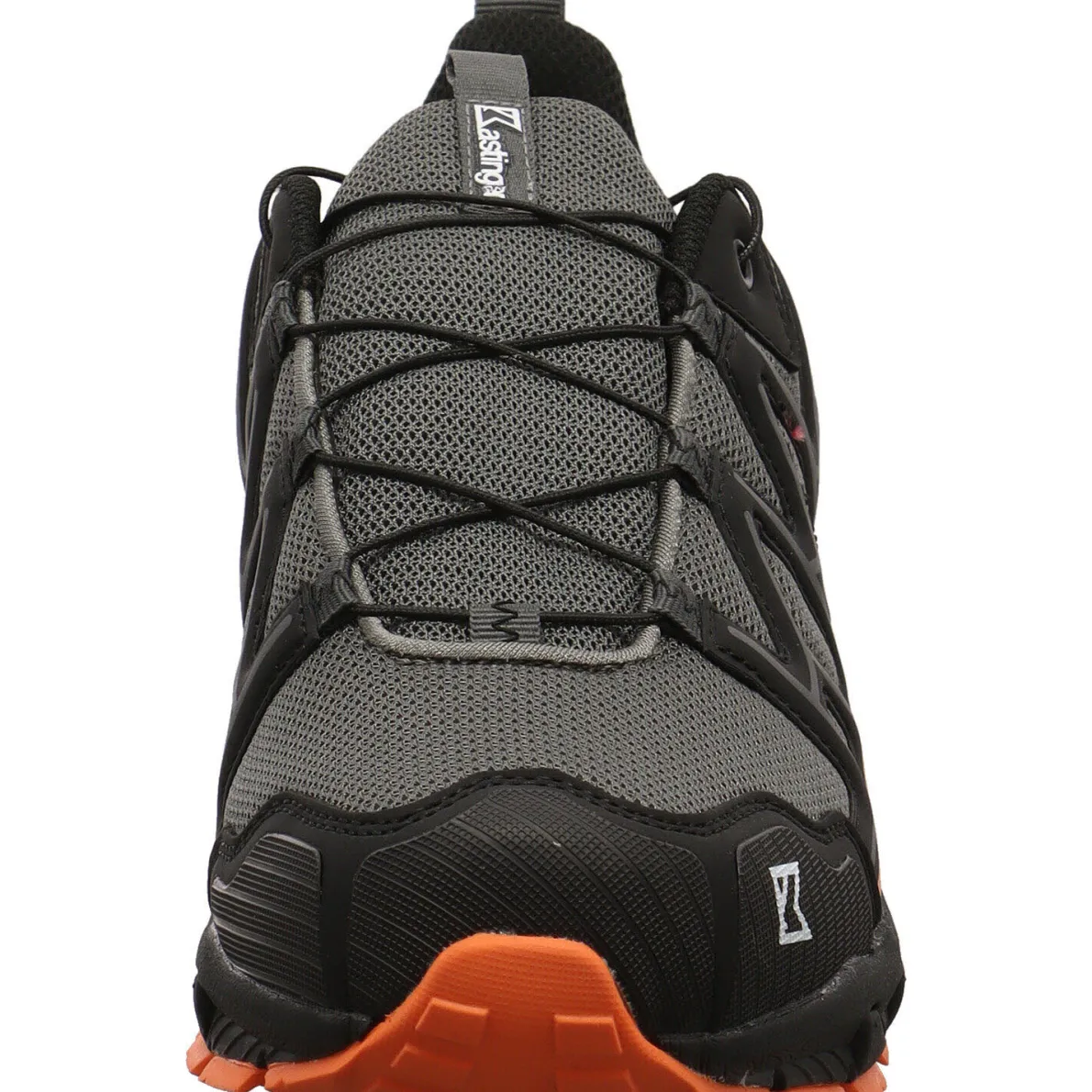 Gefertigt aus einem Mix aus Kunstleder und Textil Mesh in Grau, Schwarz und Details in Orange, ist die Schuhspitze und Ferse verstärkt, wodurch der Schuh besonders robust ist.