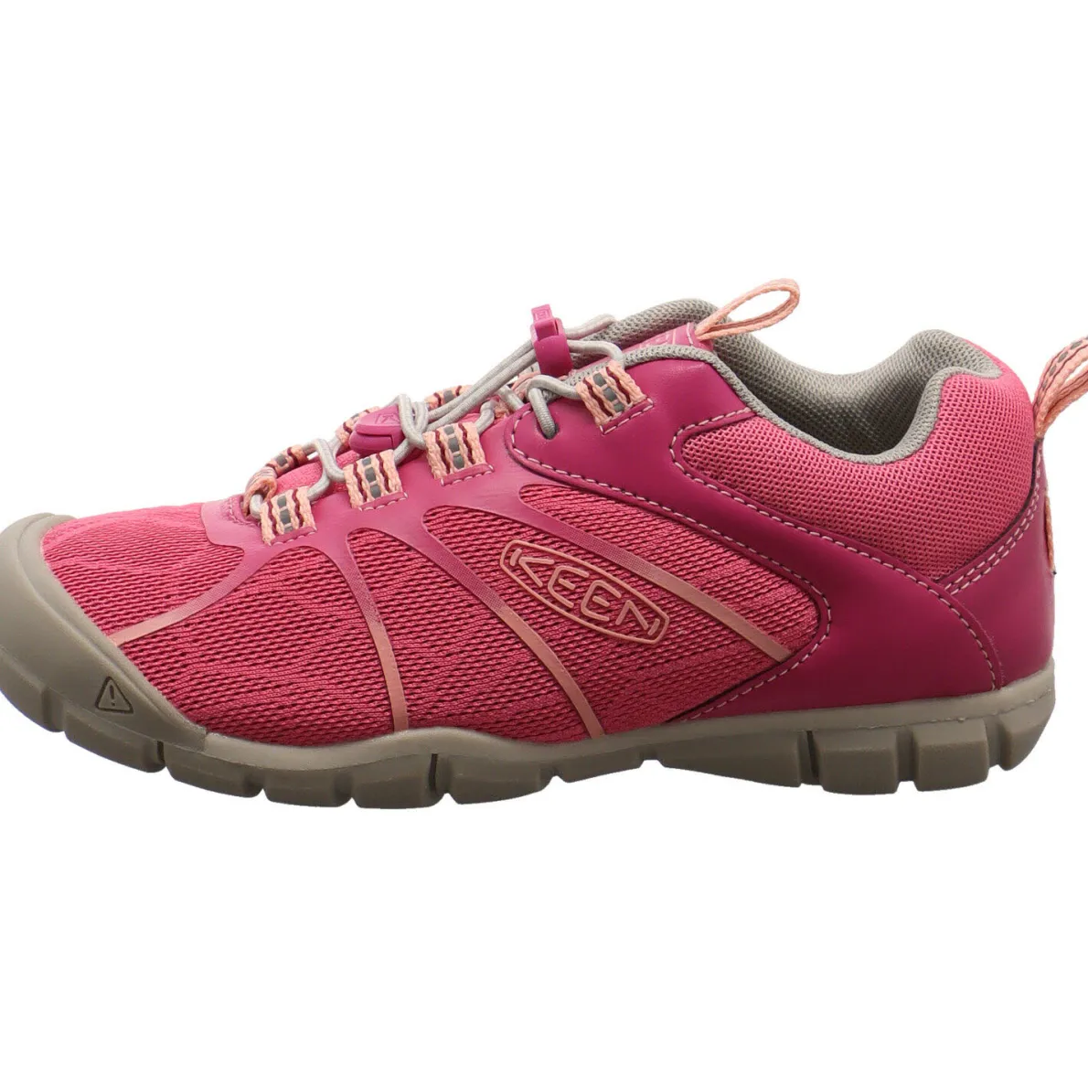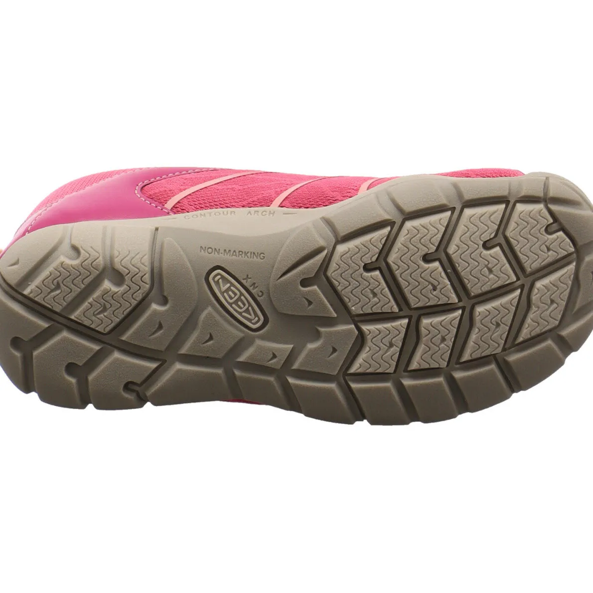 Der Chandler 2 CNX von Keen ist ein ausgesprochen praktischer Kinder Sneaker für Freizeit und Outdoor. Das Obermaterial in Pink in einem Mix aus luftigem Mesh Textil und verstärkenden synthetischen Einsätzen macht den Schuh robust und dennoch atmungsaktiv. Zudem ermöglicht die regulierbare Gummischnürung ein leichtes An- und Ausziehen, während die profilierte Laufsohle für guten Halt sorgt.