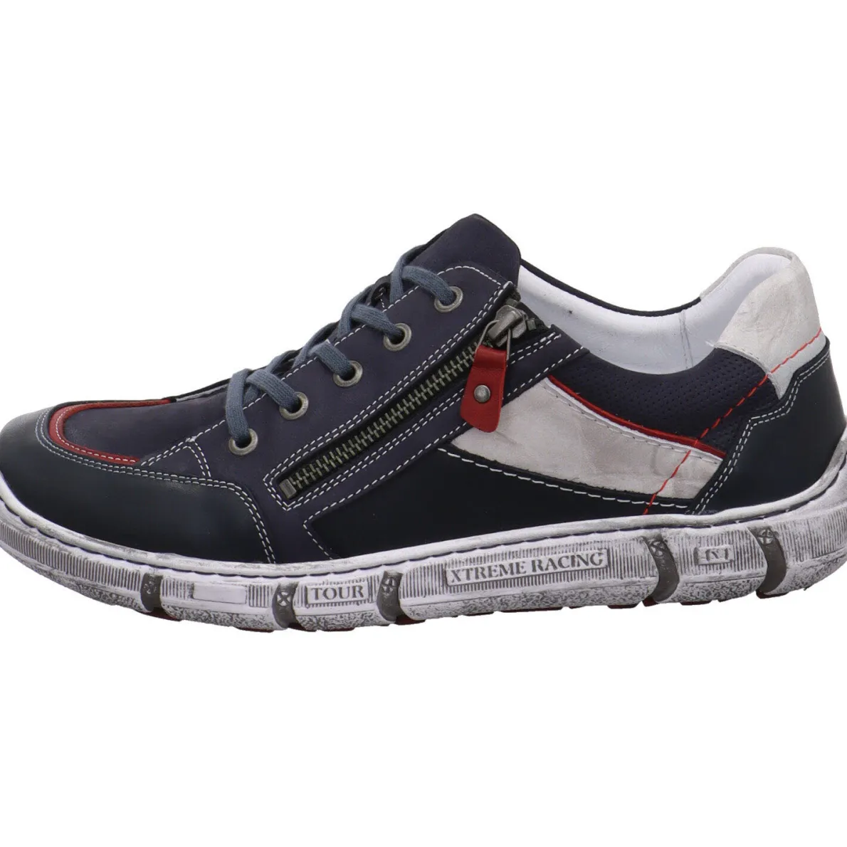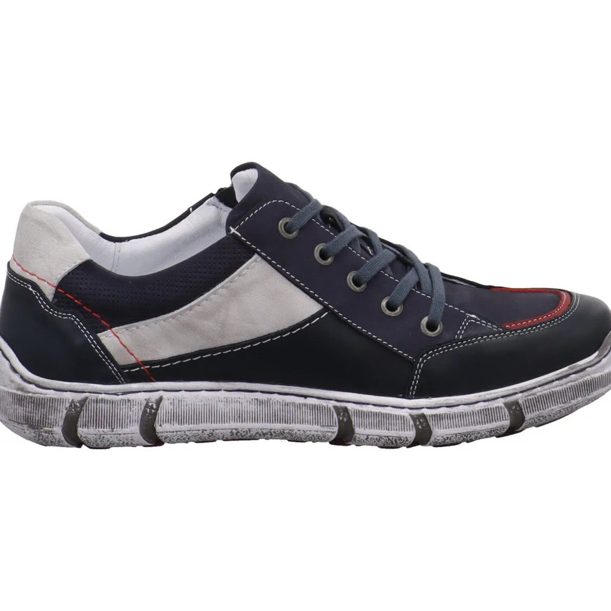 Dieser tolle Herren Schnürschuh aus dem Hause Krisbut ist ein echter Hingucker. Das Obermaterial aus hochwertigem Echtleder in Blau ist verziert mit einer auffälligen Overlay Struktur mit Akzenten in Rot, die dem Schuh ein cooles Design verleiht.