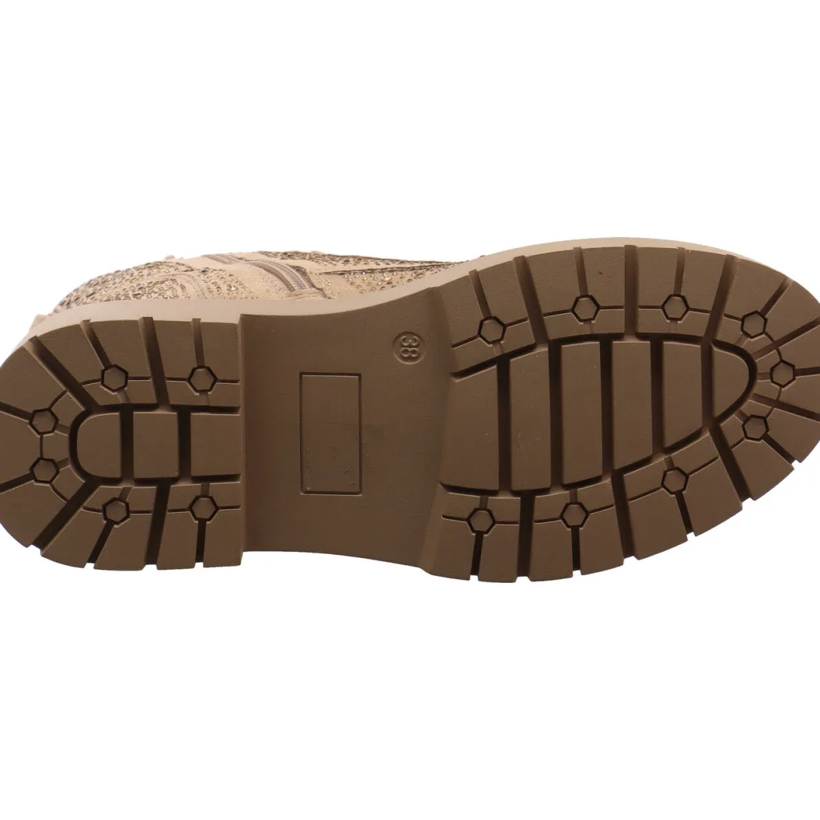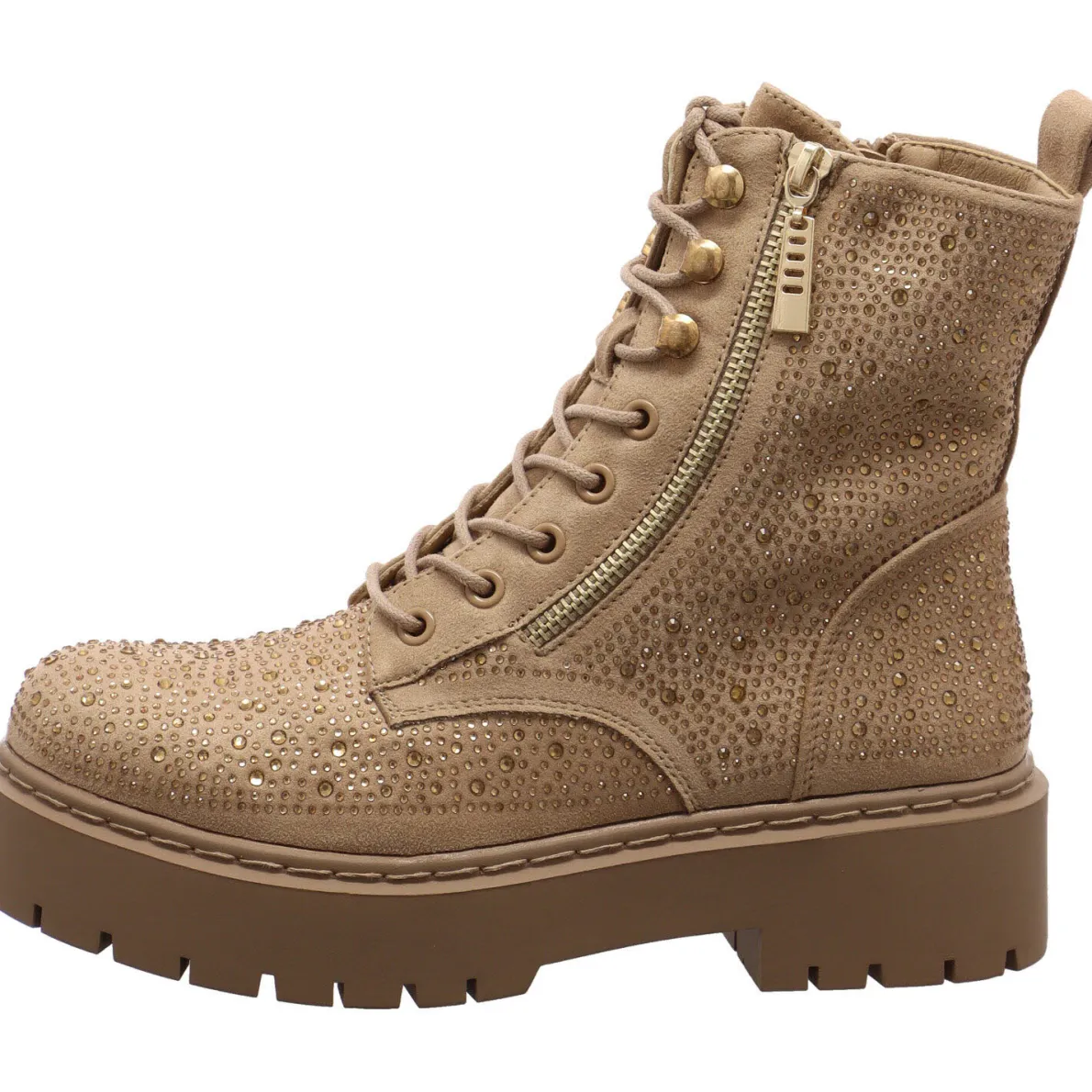 Durch die Lasche am Schaft und dem seitlichen Reißverschluss ist der Einstieg ganz leicht. Mit der Schnürung kannst du den Boots optimal an deinen Fuß passen. Ein Zierzipper neben der Schnürung ist ein zusätzlicher Hingucker.