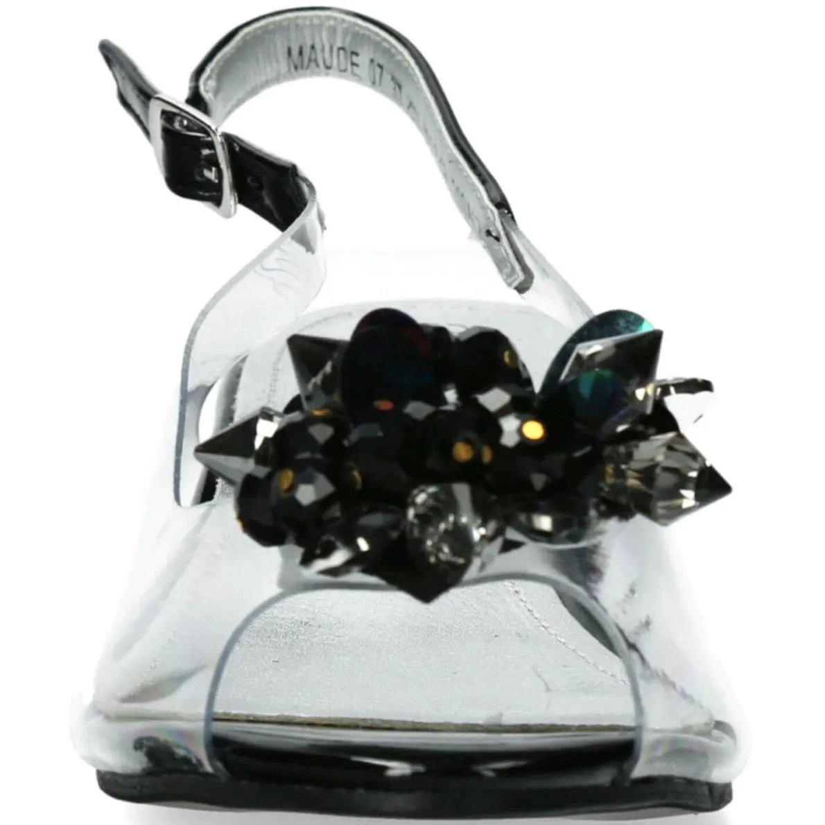 Der Schuh begeistert durch sein elegantes Design, das synthetische Obermaterial ist transparent und wirkt dadurch gläsern. Die Peeptoe Schuhspitze verleiht ihm eine tolle Optik. Der Blockabsatz ist Schwarz und überaus bequem.