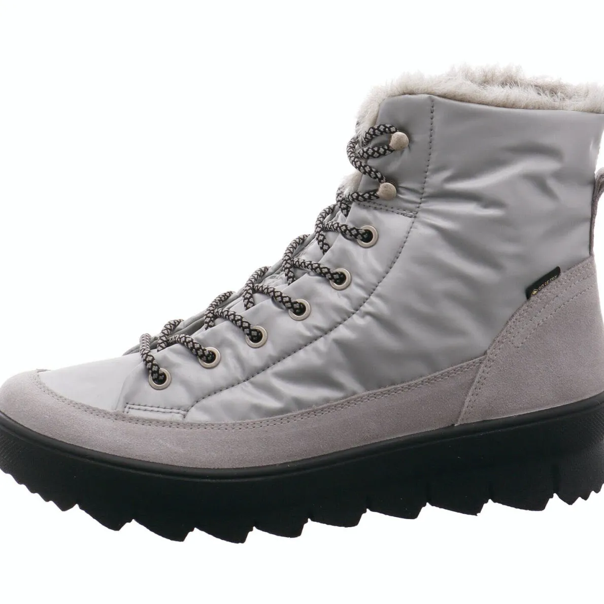 Diese sportliche Damen Schnürstiefelette Novara in Grau von Legero überzeugt nicht nur mit ihrem einzigartigem Design, sondern auch mit ihrer Funktionalität. Der Schuh wurde aus griffigem Veloursleder und hochwertigem, glänzendem Textil gefertigt und ist im Inneren dick und warm gefüttert.