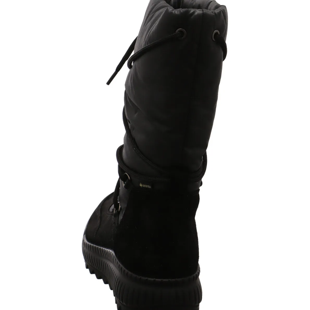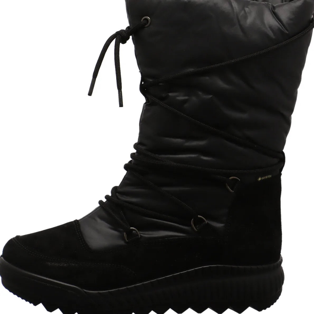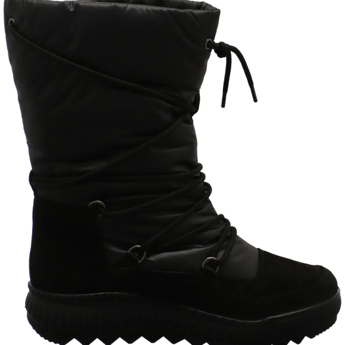 Dieser sportliche Damen Winterstiefel Tirano in Schwarz von Legero überzeugt vor allem durch seine Funktionalität. Der Schuh wurde aus einem Mix aus griffigem Veloursleder und textilen Einsätzen gefertigt und ist im Inneren dick und warm gefüttert.