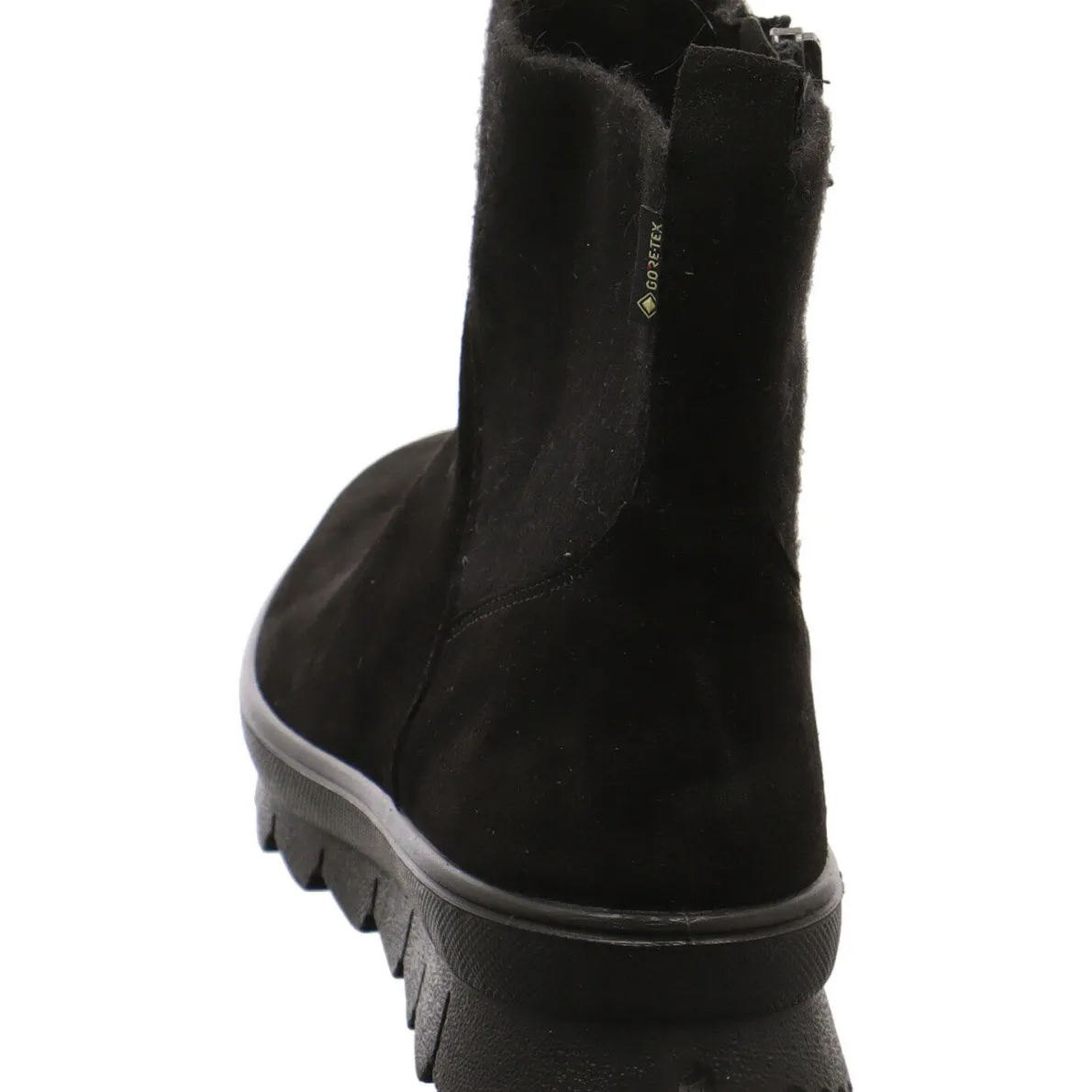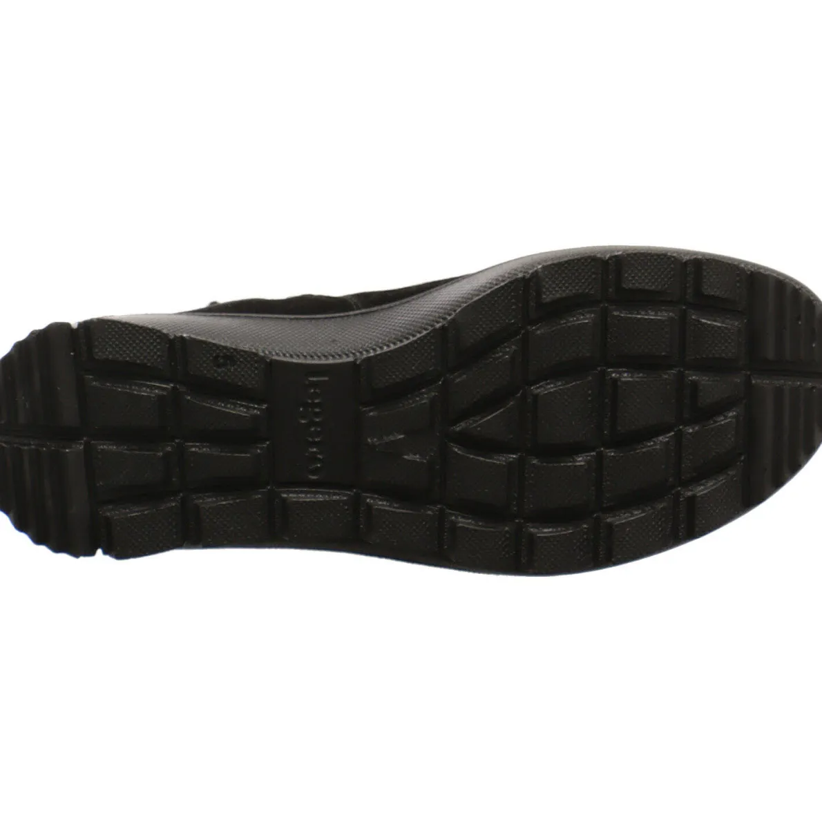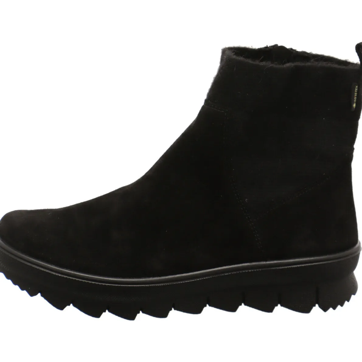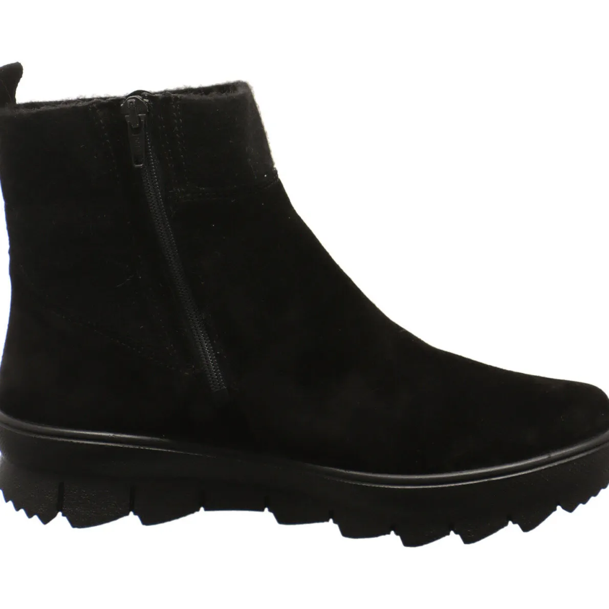 Diese sportliche Damen Stiefelette Novara in Schwarz von Legero überzeugt nicht nur mit ihrem individuellen Design, sondern auch mit ihrer Funktionalität. Der Schuh wurde aus griffigem Veloursleder gefertigt und ist im Inneren dick und warm gefüttert. Der Schaft ist aus Textil im Filz Look und mit Stretch versehen, dadurch ist der Einstieg besonders einfach. Zusätzlich ist der Stiefel mit einem funktionalen Reißverschluss versehen.
