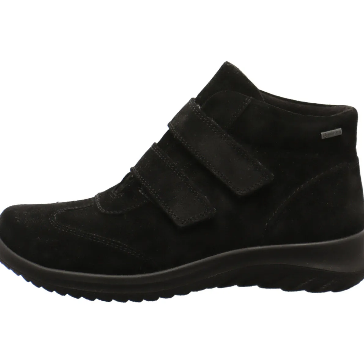 Der Softboot von Legero ist eine Winter Stiefelette für Damen aus hochwertigem Veloursleder in Schwarz. Dieser Klassiker überzeugt mit Design und Funktionalität. Die Gore-Tex Membran gewährleistet Atmungsaktivität, permanenten Luftaustausch im Schuh und macht den Schuh wasserdicht und das kuschelige Innenfutter hält Ihre Füße an kühlen Tagen angenehm warm. Damit die Membran auch wirklich für trockene Füße sorgt, achte bitte auf die richtige Auswahl der Socken, diese sollten nicht aus reiner Baumwolle bestehen. Beim Tragen reiner Baumwollsocken kannst du nämlich trotzdem nasse Füße bekommen, allerdings nicht vom Regen oder Schnee, sondern vom Tropenklima in den Schuhen.