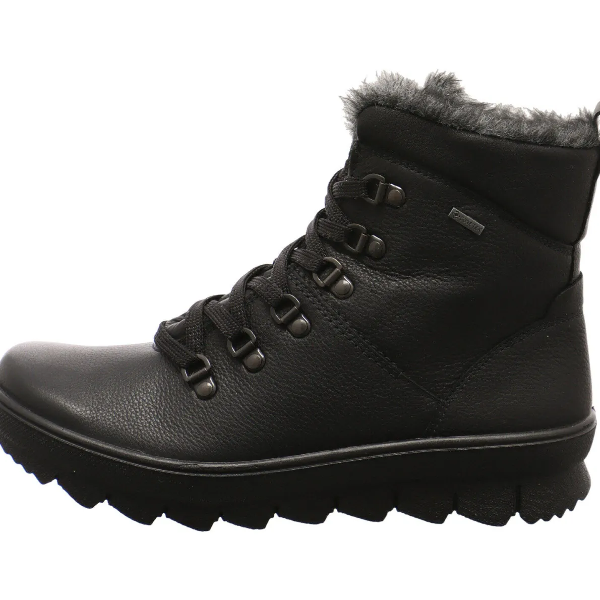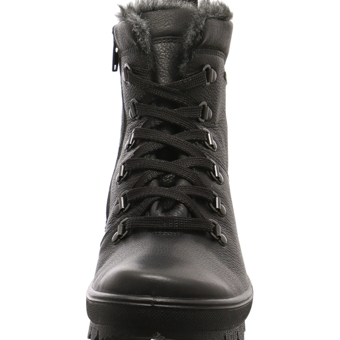 Diese sportliche Damen Schnürstiefelette Novara in Schwarz von Legero überzeugt nicht nur mit ihrem einzigartigem Design, sondern auch mit ihrer Funktionalität. Der Schuh wurde aus weichem Echtleder gefertigt und ist im Inneren dick und warm gefüttert.