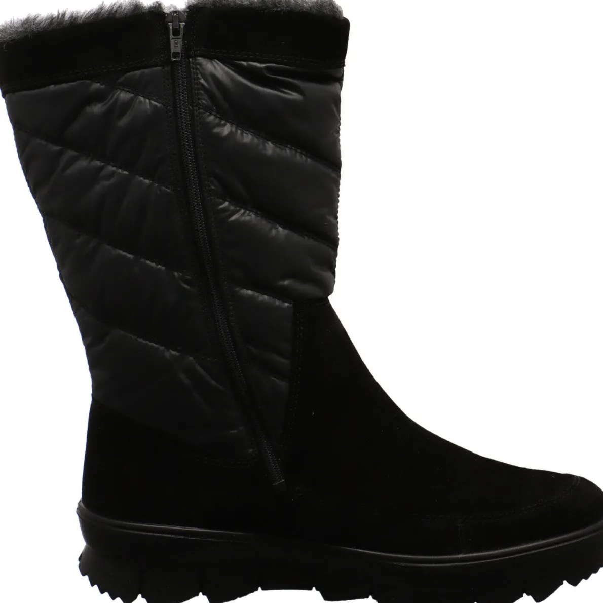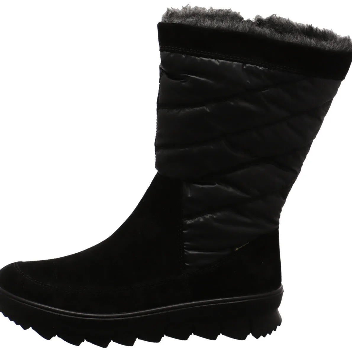 Dieser sportliche Damen Winterstiefel Novara in Schwarz von Legero überzeugt vor allem durch seine Funktionalität. Der Schuh wurde aus einem Mix aus griffigem Veloursleder und textilen Einsätzen gefertigt und ist im Inneren dick und warm gefüttert.