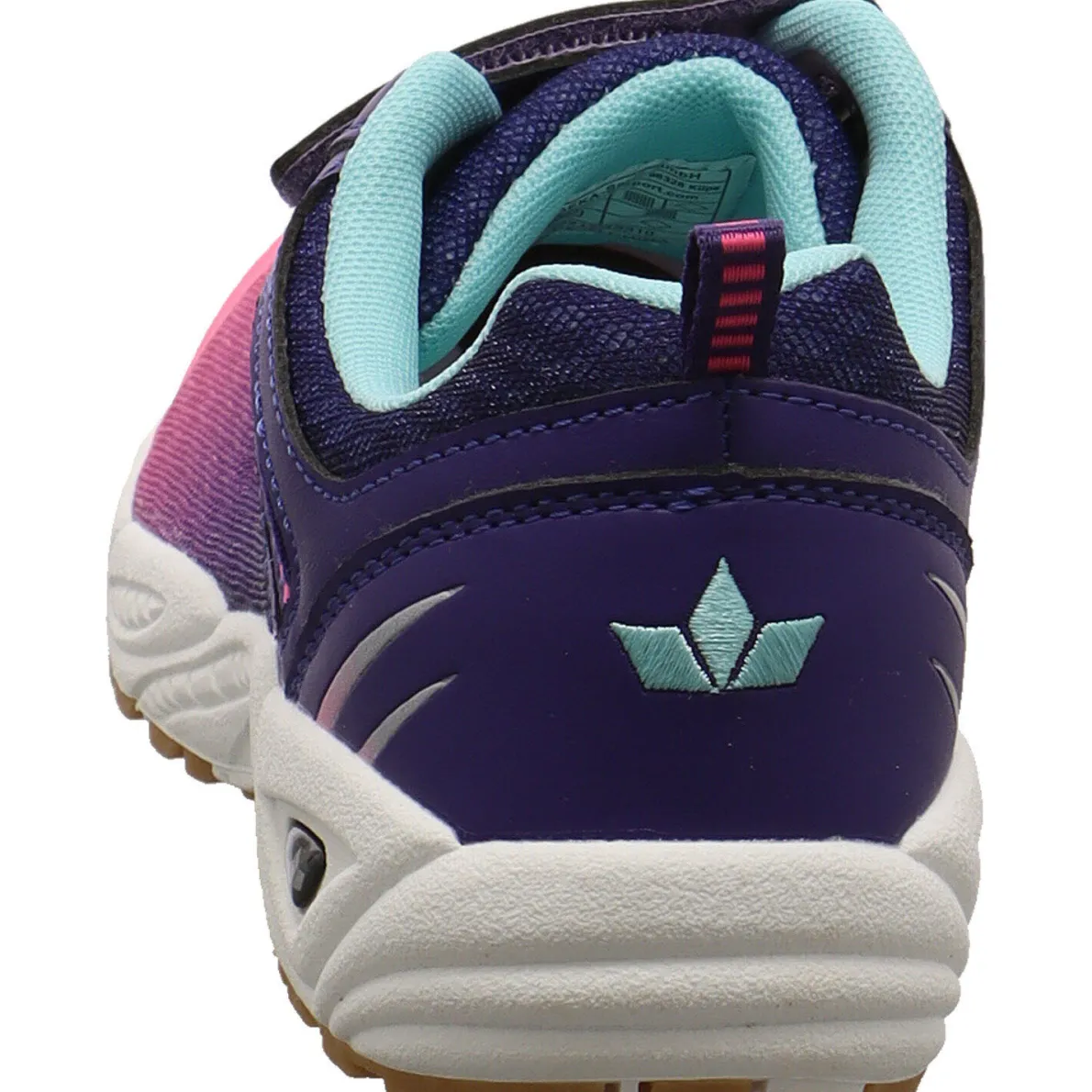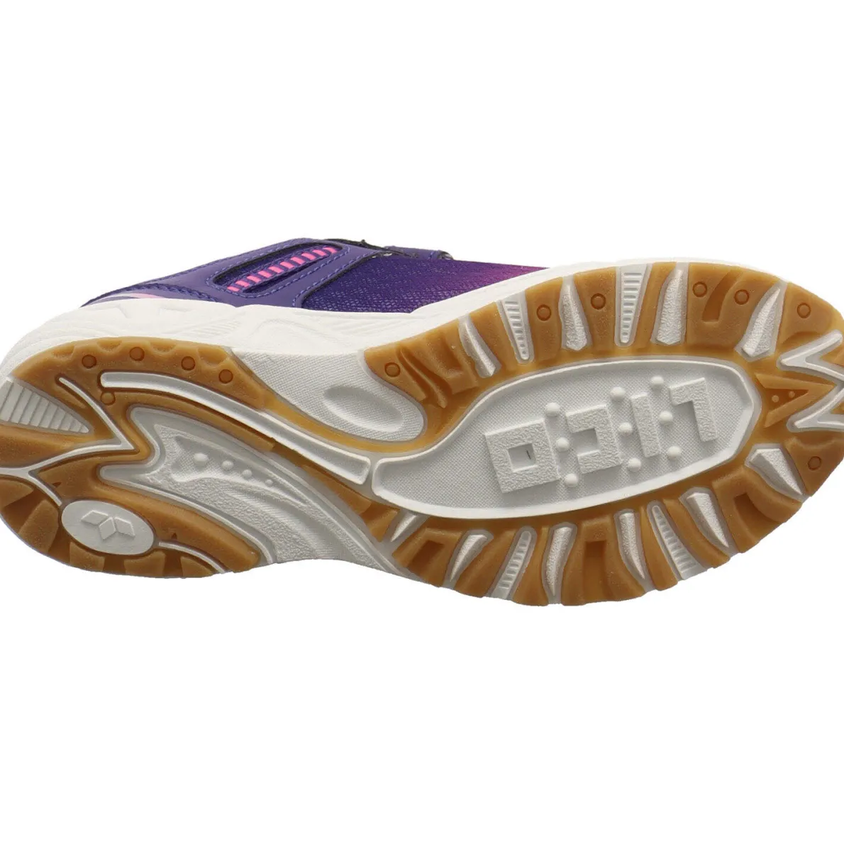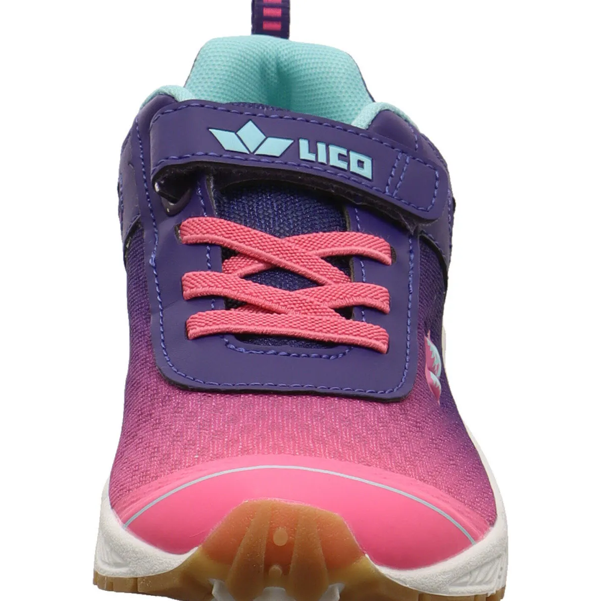Der Barney VS aus dem Hause Lico ist ein Kinder Hallen Sportschuh für Mädchen in trendigem Lila mit Pink und Türkis Blau.