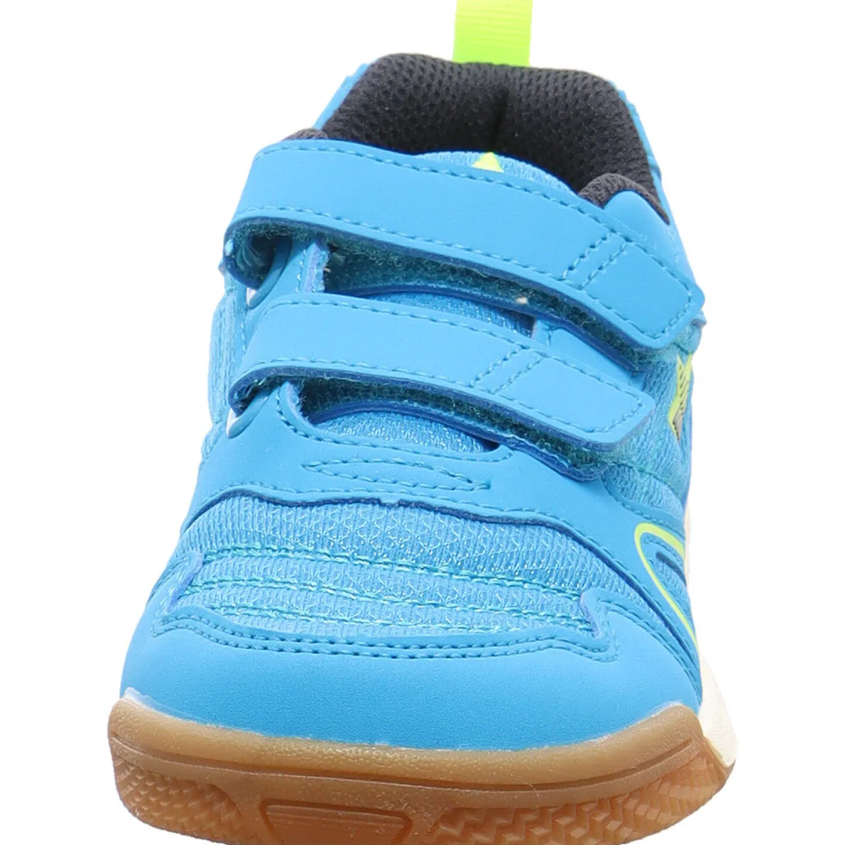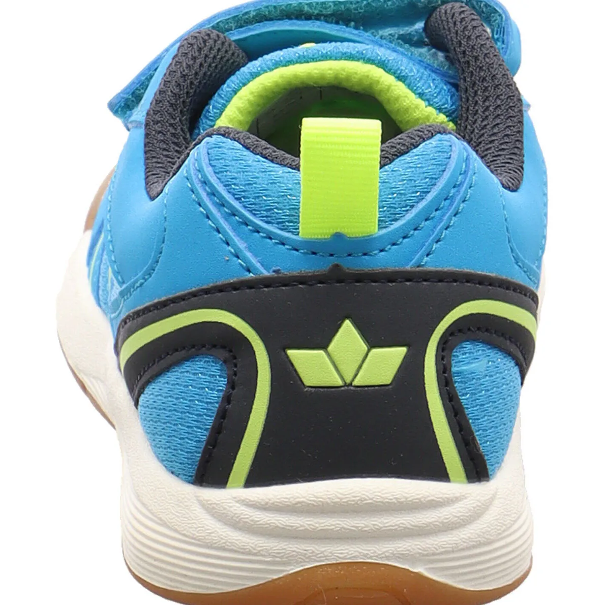 Der Boulder V aus dem Hause Lico ist ein Kinder Jungen Hallen Sportschuh in trendigem Türkis Blau mit Weiß und Gelb.