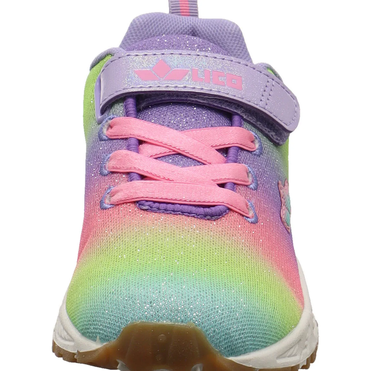 Der Florina VS aus dem Hause Lico ist ein Kinder Hallen Sportschuh für Mädchen in trendigen Pastell Farben wie Grün, Rosa und Lila. Das Obermaterial in einem Mix aus Kunstleder und Textil macht den Schuh gleichzeitig flexibel und dennoch stabil. Besonderer Eyecatcher ist dabei der Glitzer Effekt.