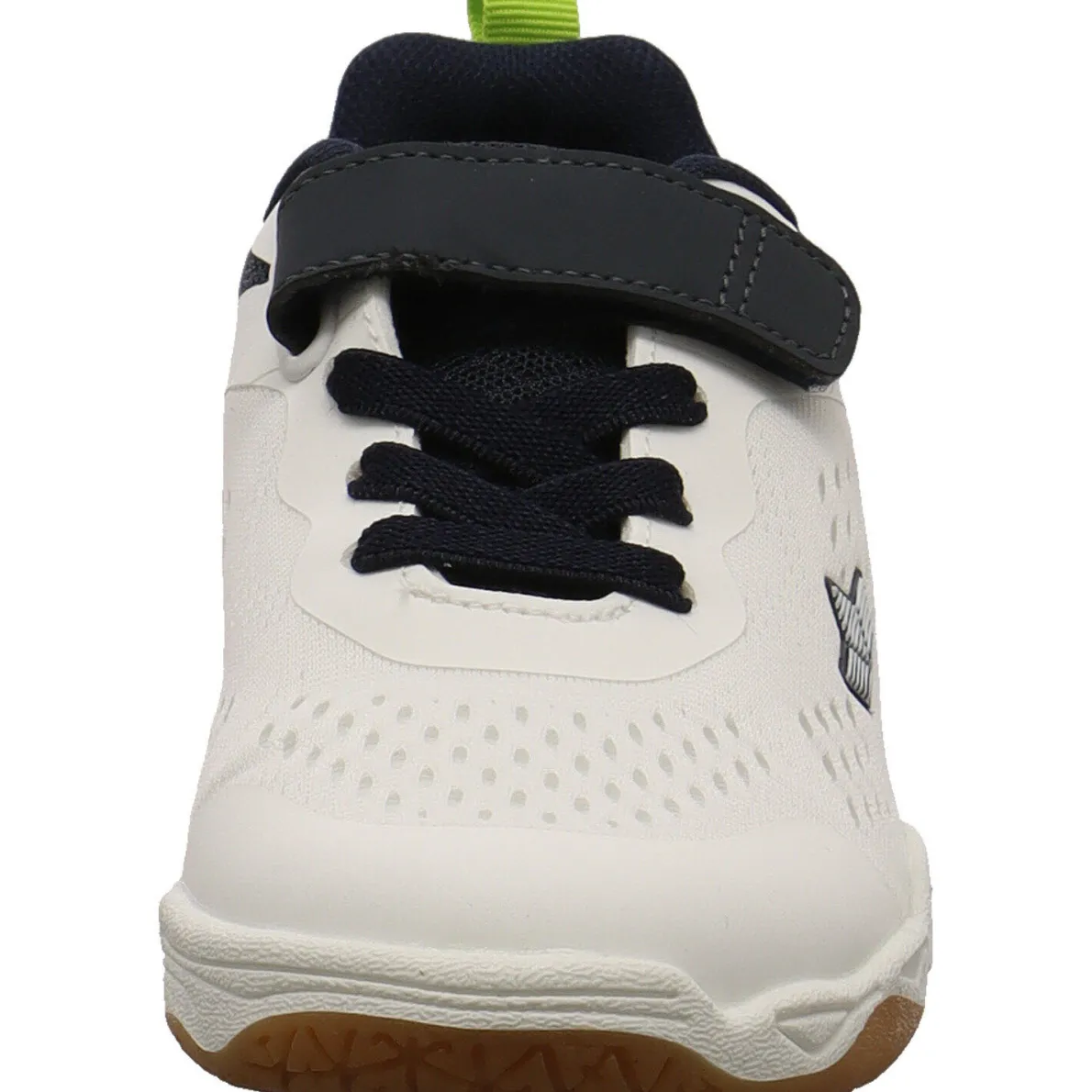 Das Obermaterial wurde aus flexiblem und luftdurchlässigen Textil Meshgewebe in Weiß gefertigt. Es macht wunderbar jede Bewegung mit. Synthetik Einsätze geben dem Schuh dennoch genügen Halt. Eyecatcher sind dabei die Farbakzente in Blau und Grün. Durch sein tolles Design, eignet er sich sowohl für Mädchen als auch Jungen.