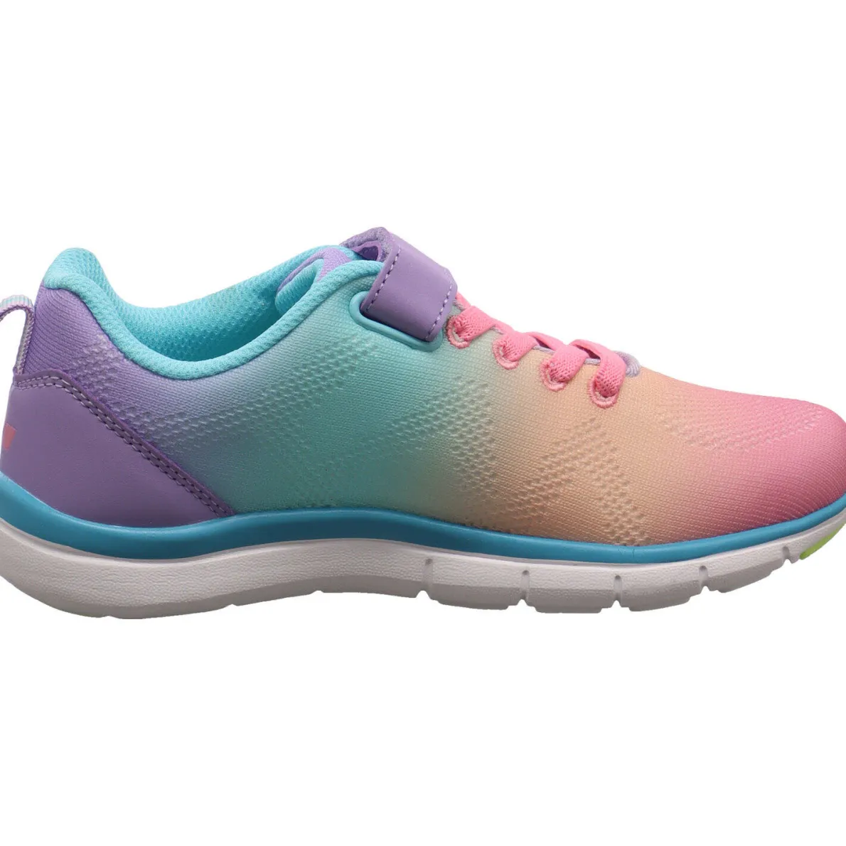 Sein Name macht ihm alle Ehre, denn das Textil Meshgewebe ist in tollen angesagten Pastell Farben wie Rosa, Türkis und Lila gearbeitet. Und ein Highlight für jedes Mädchen. Er ist wunderbar flexibel und macht jede Bewegung zuverlässig mit. Einsätze aus Synthetik geben dem Schuh den notwendigen Halt. Durch die Gummischnürung, den Klettverschluss und der Lasche am Schaft ist der Einstieg kinderleicht. Der Schaft ist angenehm weich gepolstert und die Innensohle als Wechselfußbett gearbeitet. So kann er nach dem Einsatz gut gelüftet werden und du kannst vorab die optimale Größe für dein Kind ermitteln. Dazu helfen dir die Markierungen auf der Sohle. Die helle Sohle ist wunderbar leicht und flexibel. Er kann als Sneaker für den Kindergarten und die Schule genutzen werden. Aber auch als leichter Sportschuh findet er seine Verwendung.