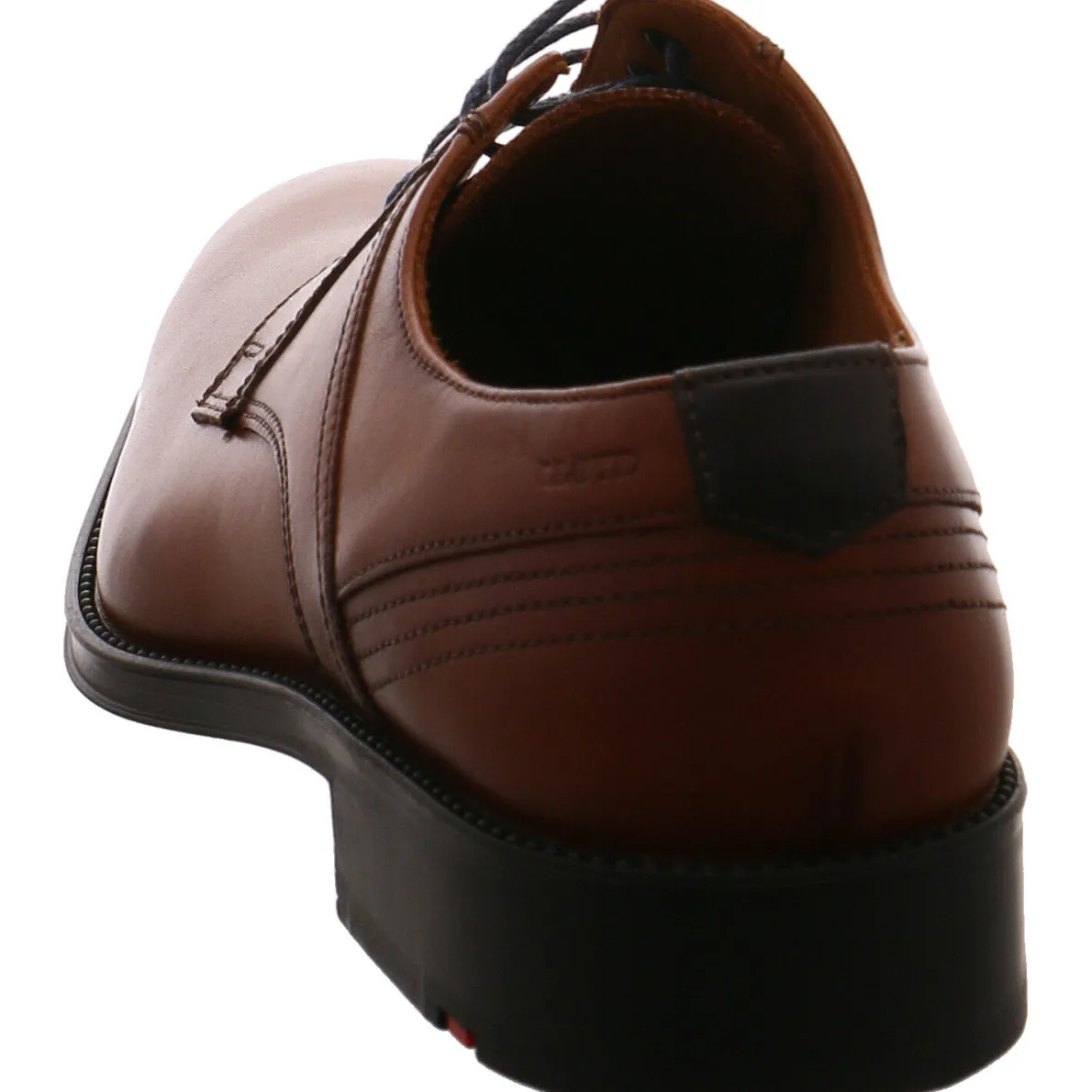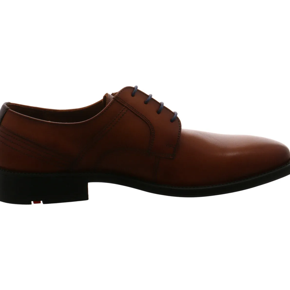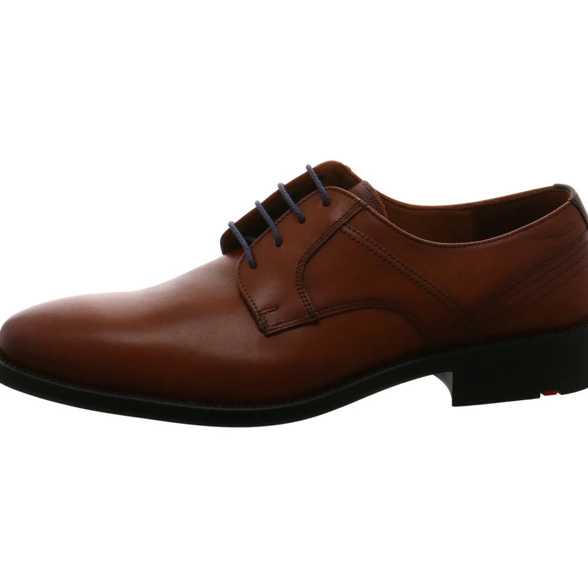 Dieser klassische Herren Schnürschuh Gala aus dem Hause Lloyd ist ein eleganter Begleiter für moderne Männer. Aus hochwertigem und ausgesuchtem Echtleder in Cognac Braun gefertigt, besticht er in klassischem und doch individuell gestaltetem Design mit interessanter Linienführung.Die 4-Loch Schnürung mit Senkeln in Blau paast perfekt zum Look. Ein schicker und absolut bequemer Herrenschuh der Sie zum Business Outfit oder bei festlichen Anlässen begleitet!