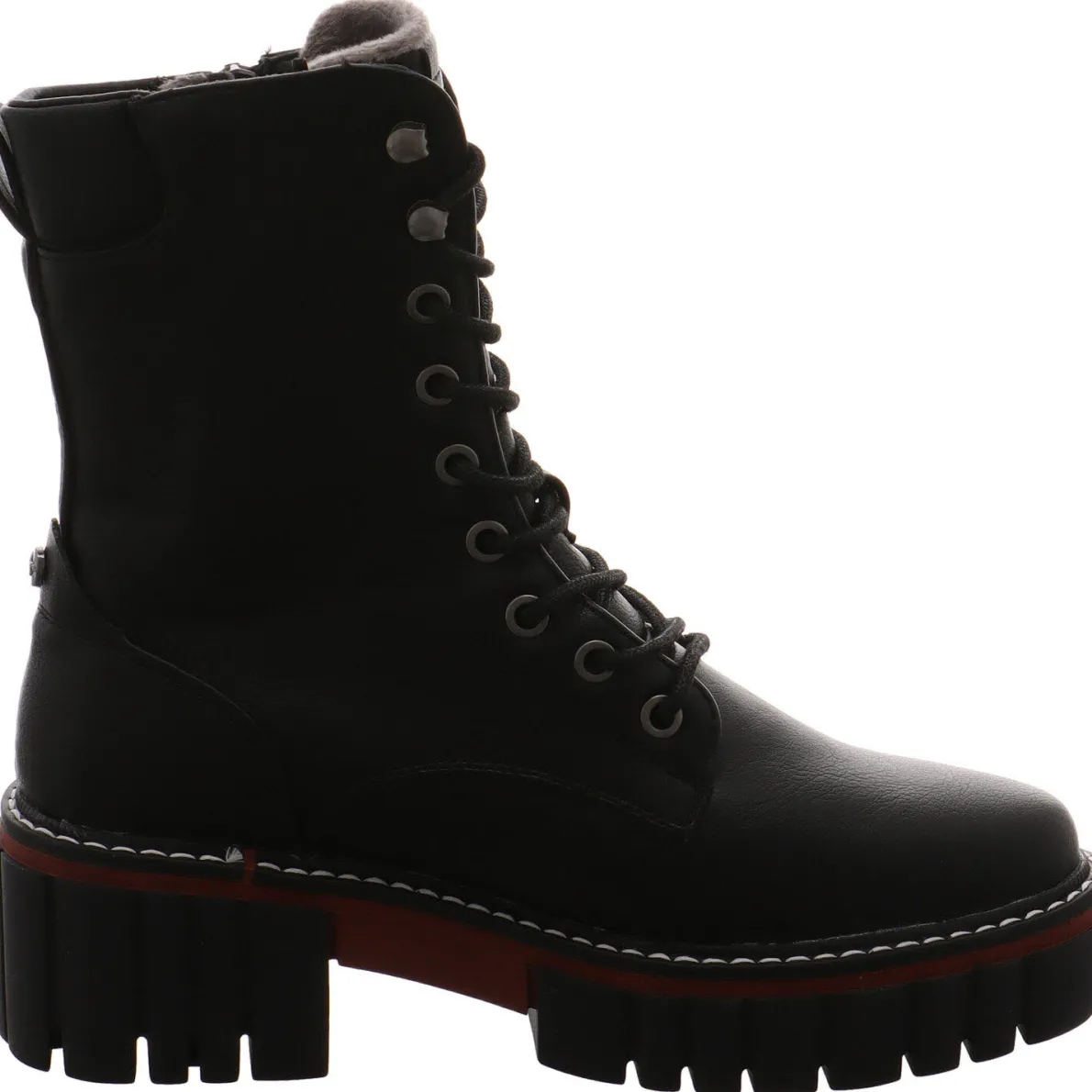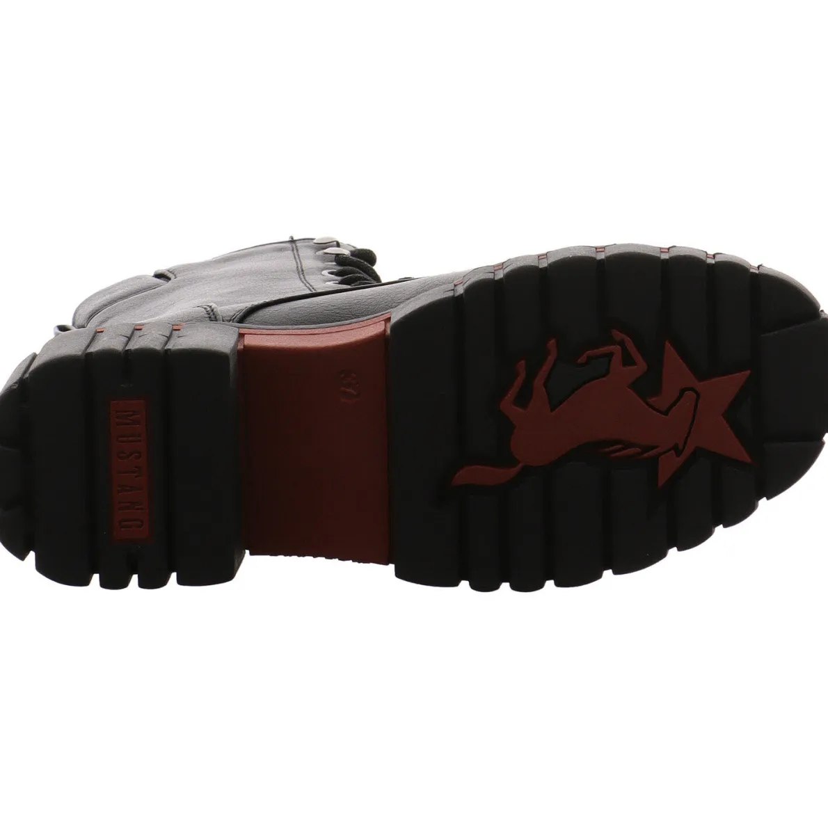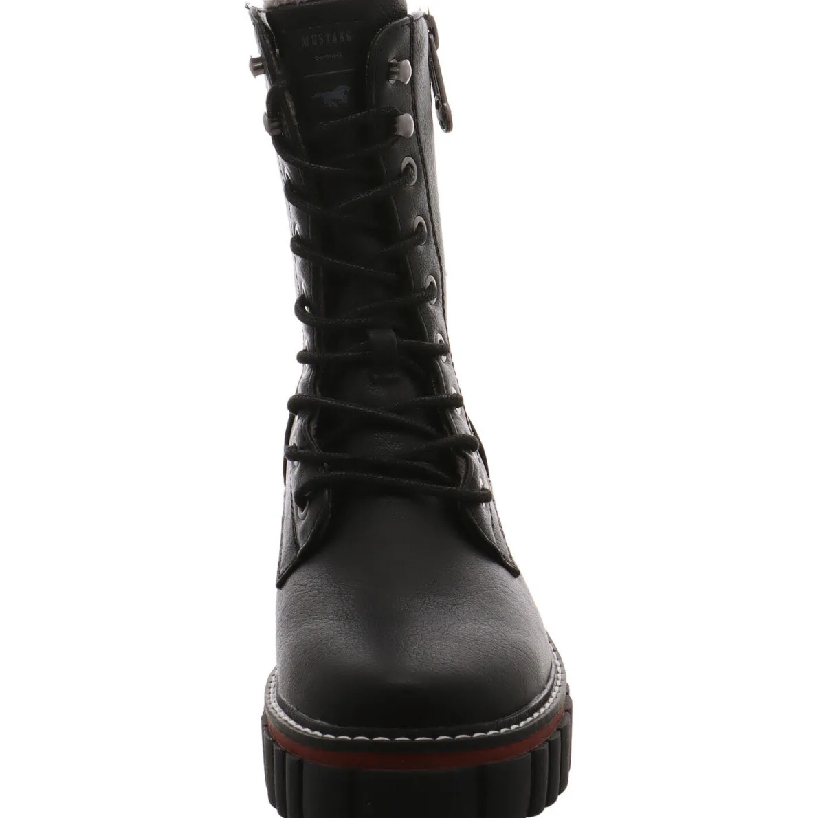Dieser Damen Schnürboots von Mustang ist ein absoluter Eyecatcher. Das Obermaterial aus pflegeleichtem Kunstleder in Schwarz wird durch die markanten Schnürsenkelösen gekonnt in Szene gesetzt.