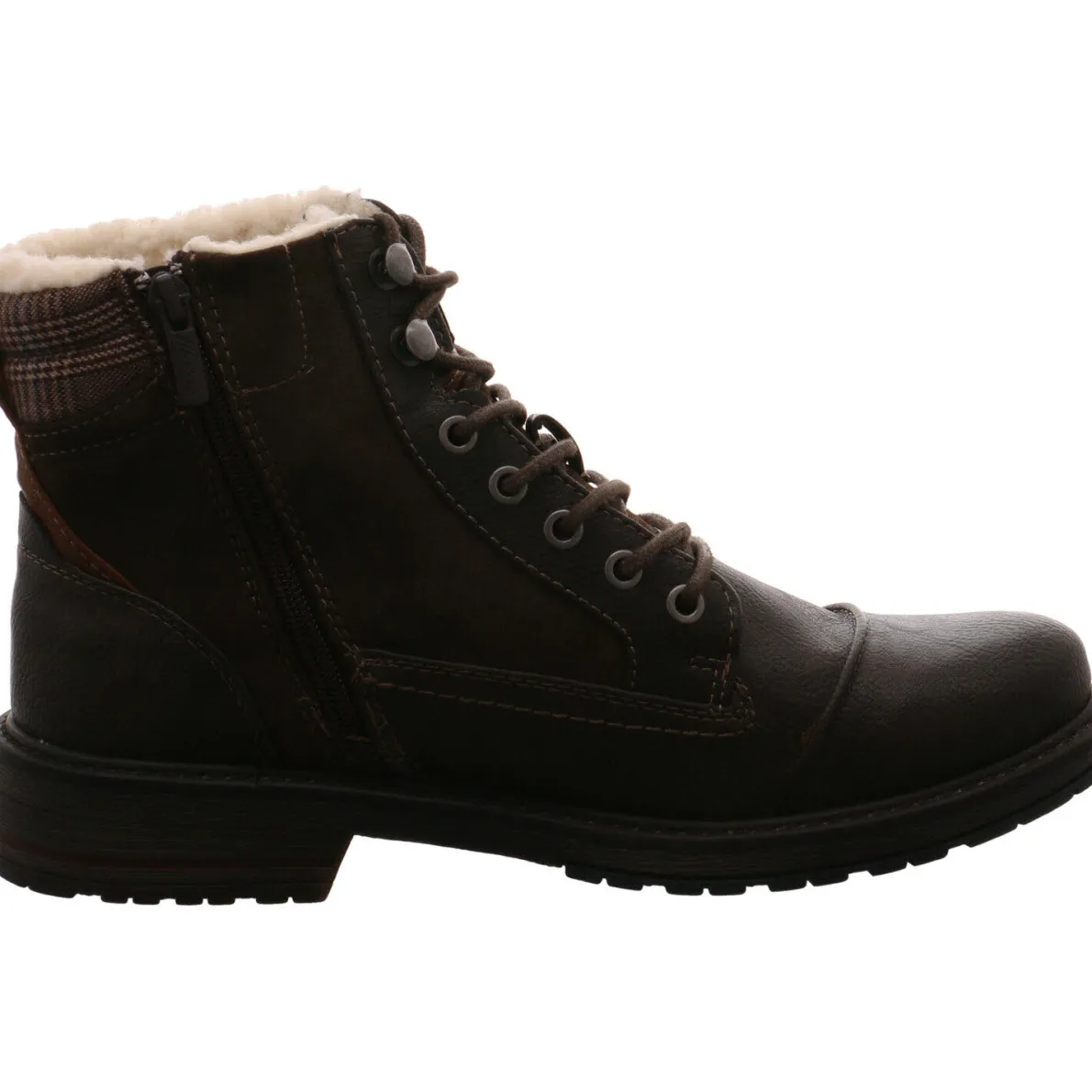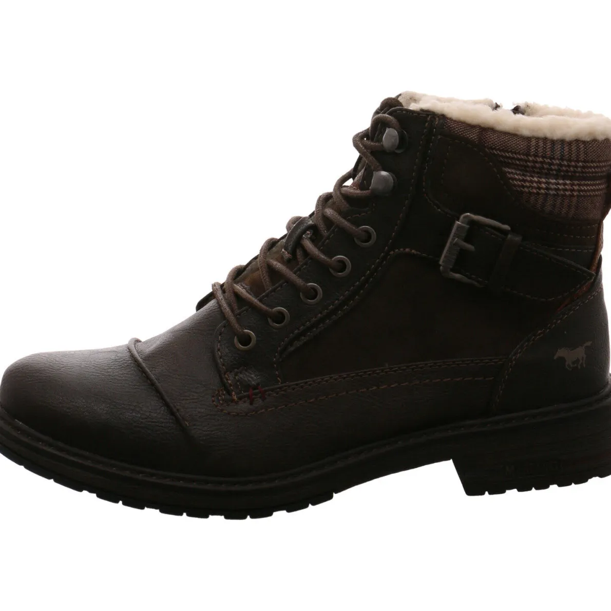 Mit diesem Herren Schnürboots von Mustang liegen Sie diesen Herbst und Winter voll im Trend. Gefertigt aus hochwertigem Kunstleder in Braun, ist er am Schaft mit einem Textil Einsatz mit Karo Muster versehen. Der Reißverschluss hilft bei einem leichten Ein- und Ausstieg.