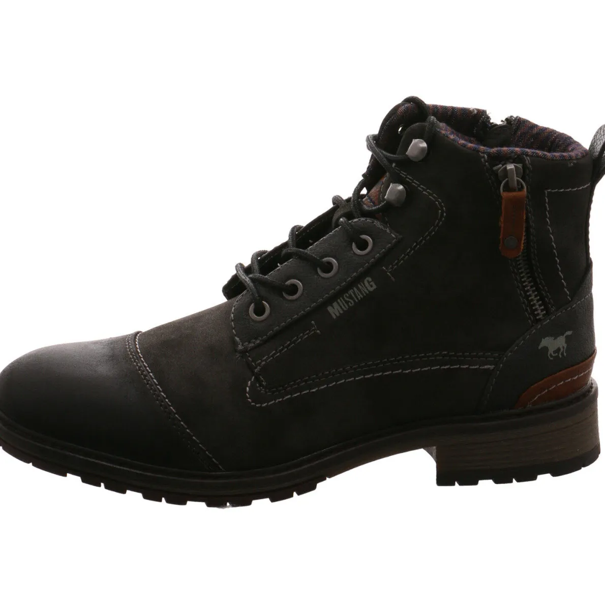 Mit diesem Herren Schnürboots von Mustang liegen Sie diesen Herbst und Winter voll im Trend. Gefertigt aus hochwertigem Kunstleder in Grau, ist er am Schaft mit einem Zierzipper versehen. Der Reißverschluss und die Lasche helfen bei einem leichten Ein- und Ausstieg.
