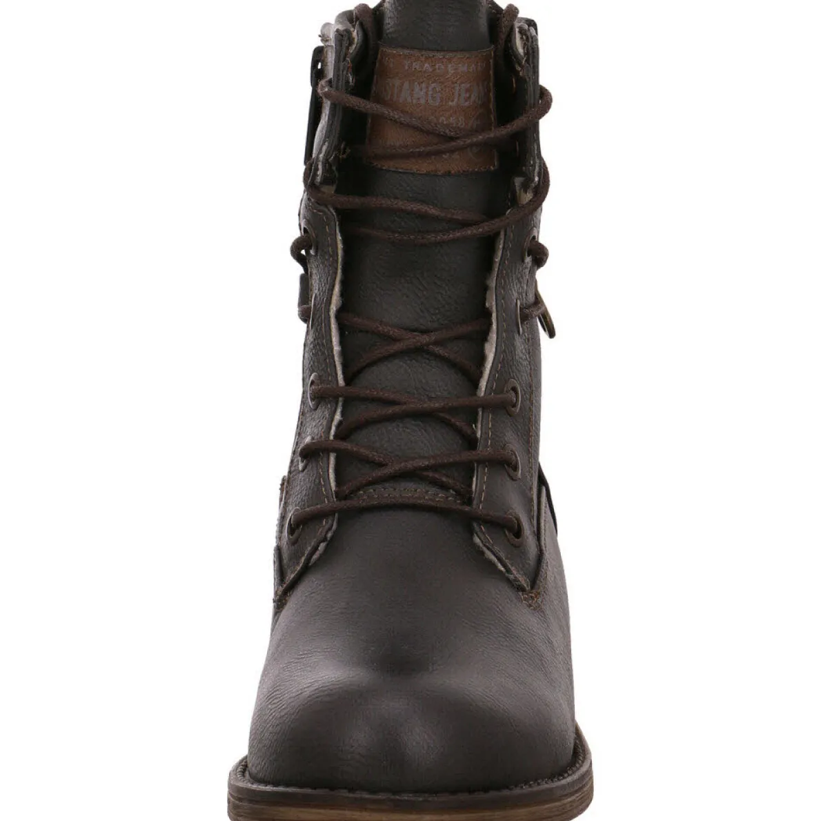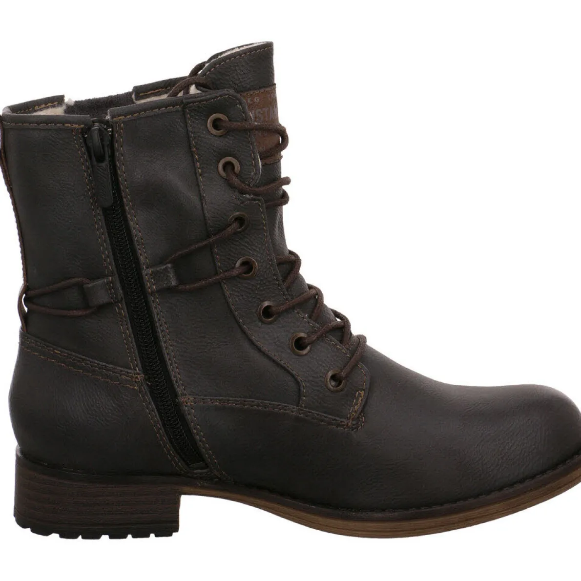 Dieser individuelle Damen Schnürboots in Graphit Grau von Mustang besticht mit attraktivem Lederimitat und verleiht dir einen coolen Auftritt.