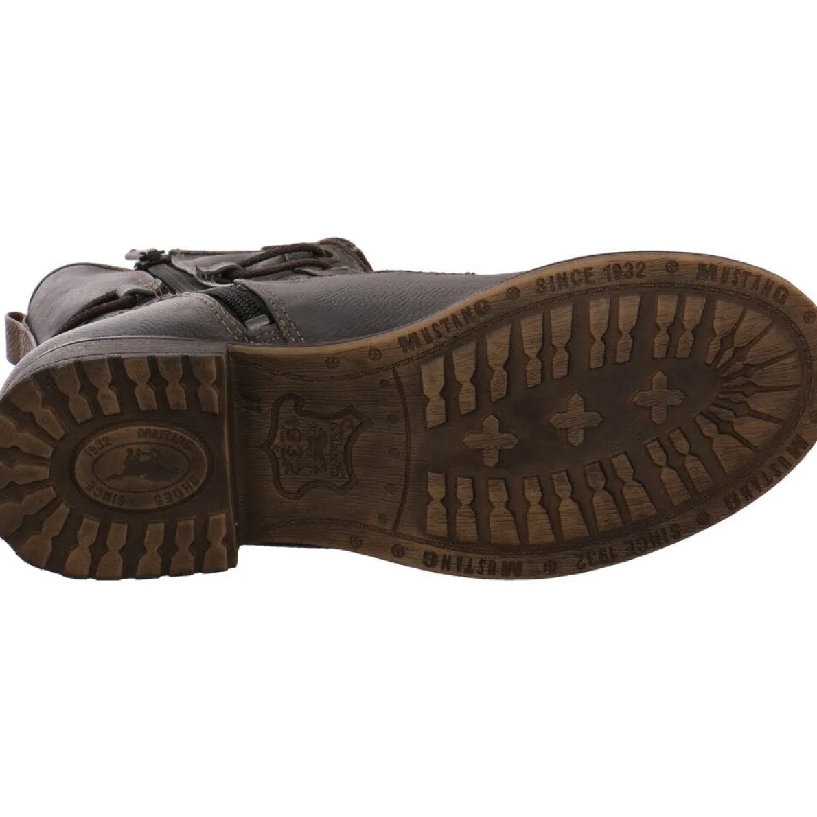 Der Blockabsatz mit einer Höhe von 3cm sowie die leicht profilierte Laufsohle mit integriertem Mustang-Logo runden das Gesamtkonzept ab.