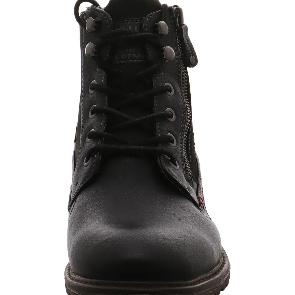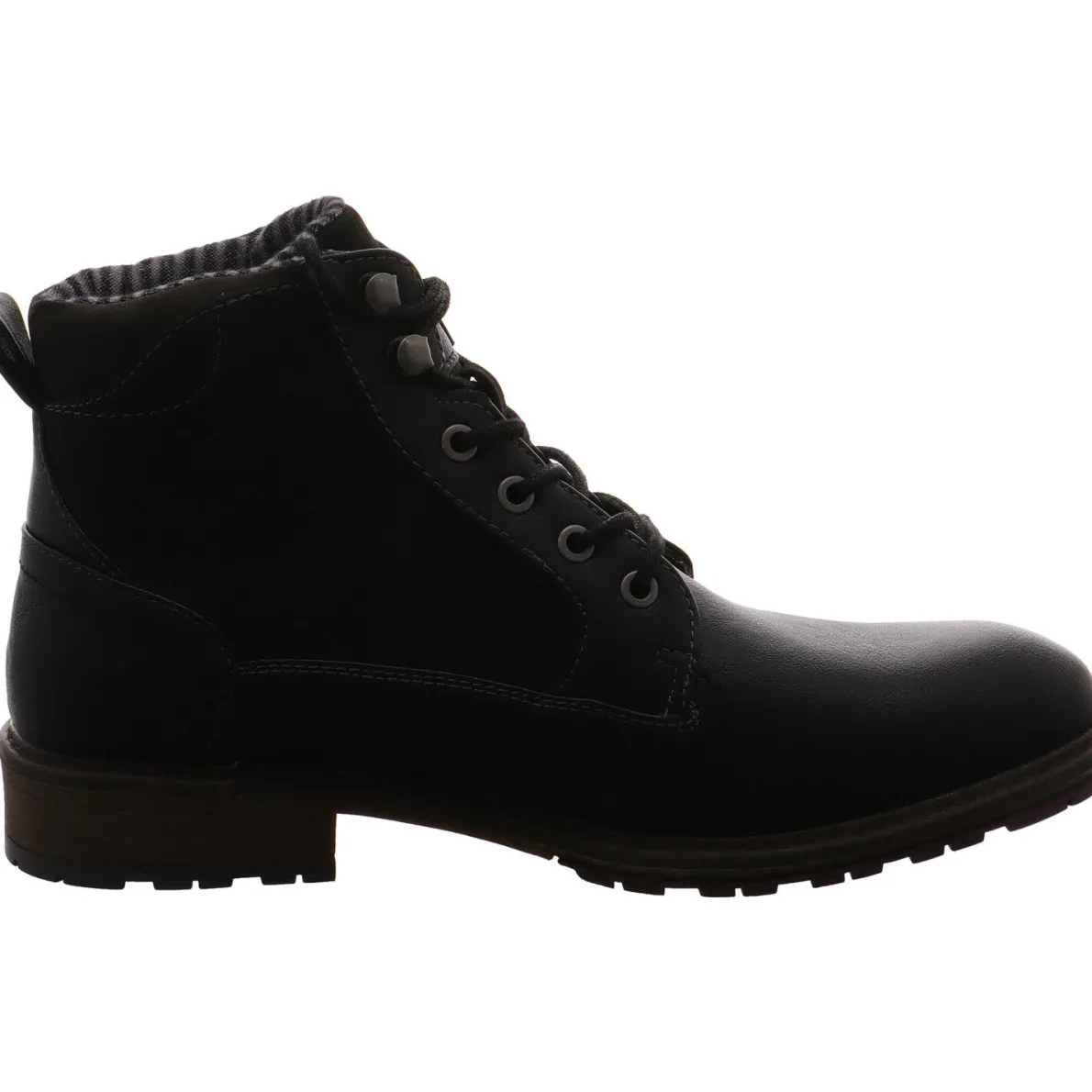 Mit diesem Herren Schnürboots von Mustang liegst du diesen Herbst und Winter voll im Trend. Gefertigt aus hochwertigem Kunstleder in Schwarz, ist er am Schaft angenehm gepolstert und das Innenfutter fällt durch ein Streifen Muster direkt auf. Der Reißverschluss und die Lasche helfen bei einem leichten Ein- und Ausstieg. Und dank der Schnürung kann er optimal an den Fuß angepasst werden.