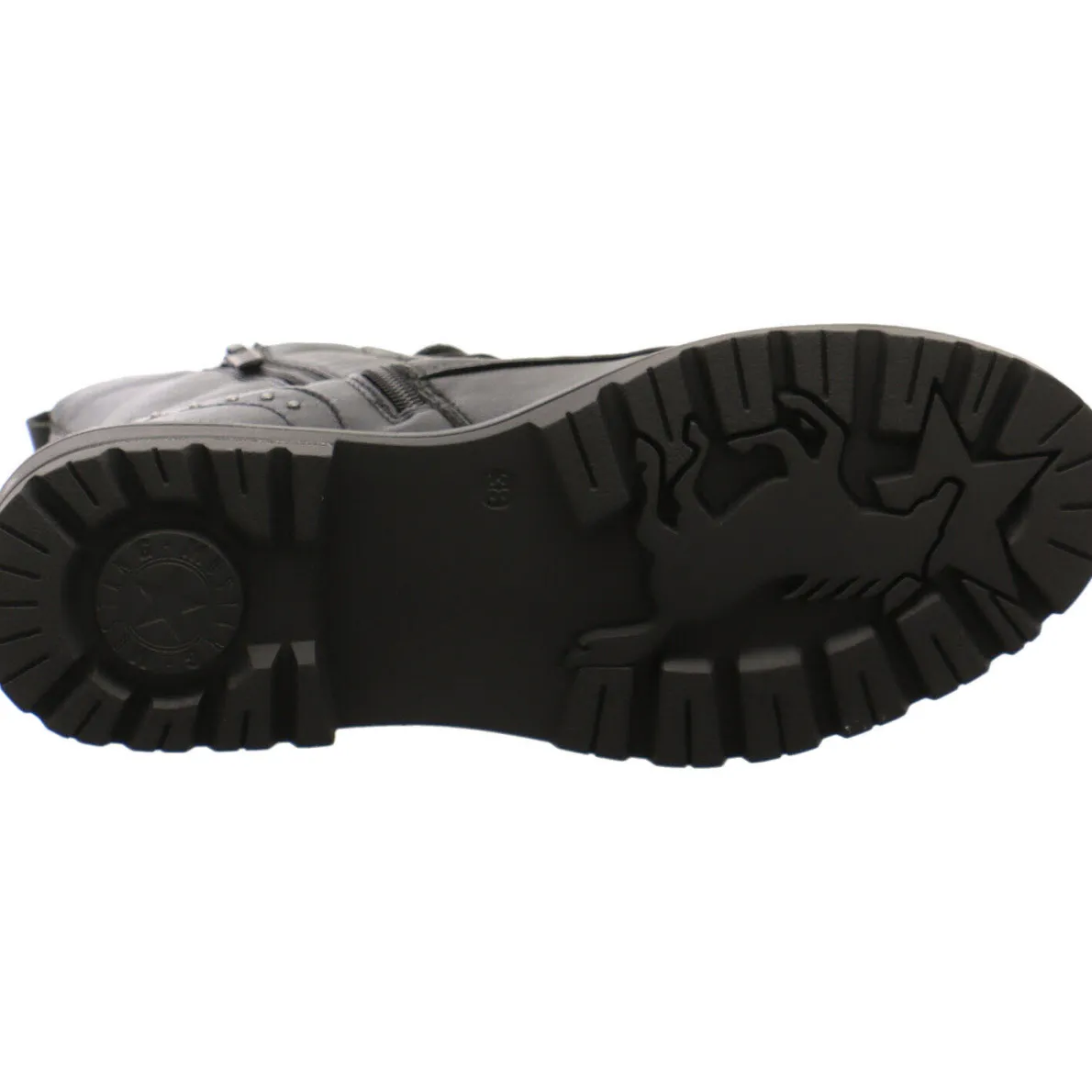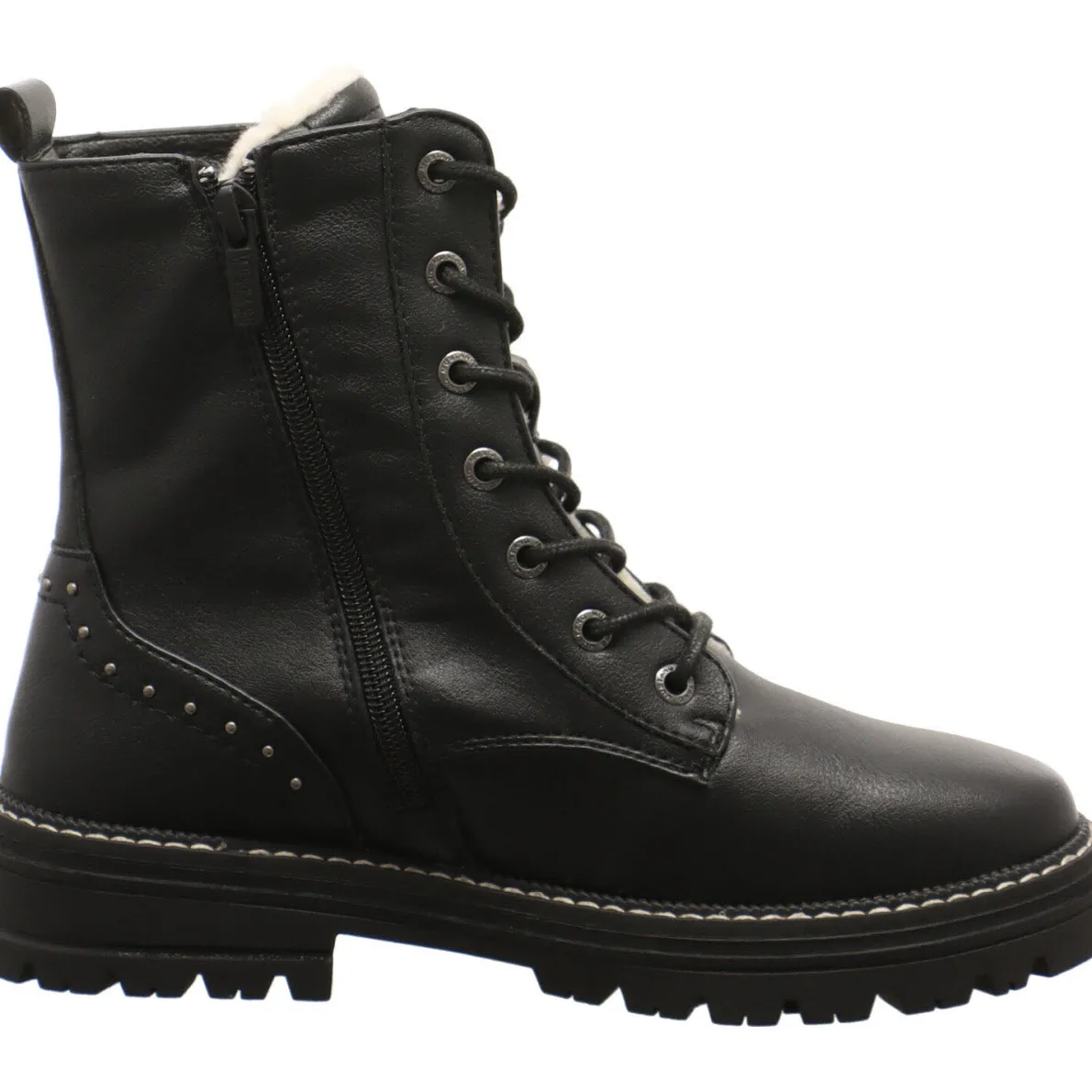 Abgerundet wird der auffällige Look durch die gut profilierte Laufsohle mit Blockabsatz mit der groben Naht in Grau. Die eingesetzten kleinen Nieten an der Ferse und der seitliche Zierreißverschluss runden das schlichte Design des Boots gekonnt ab. Die Kombination aus der Lasche am Schaft und dem seitlichen Reißverschluss garantiert einen leichten Ein- und Ausstieg. Der Schuh ist angenehm warm gefüttert und somit ein toller Begleiter für kalte Herbst-und Wintertage.