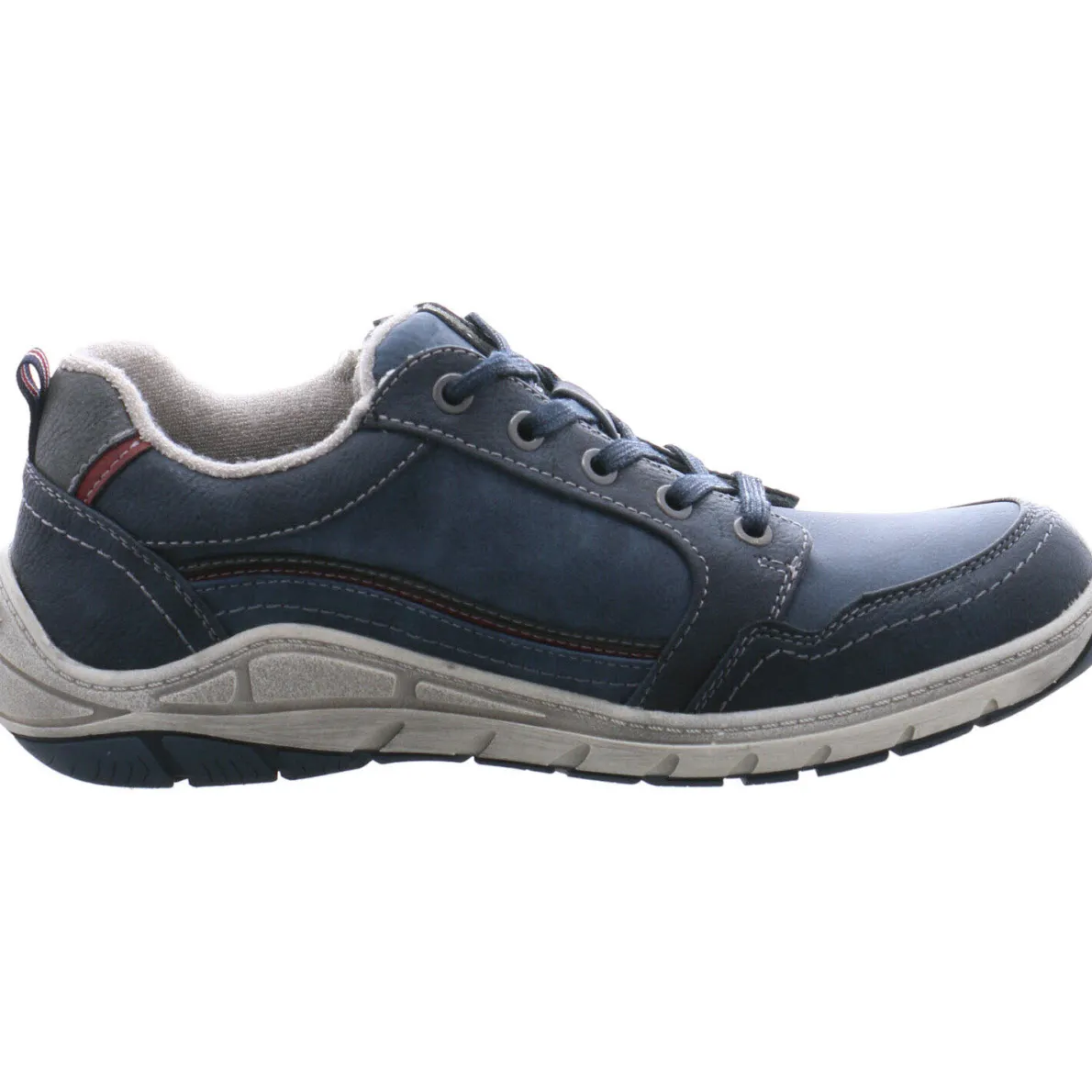 Dieser sportliche Schnürschuh für Herren aus dem Hause Mustang ist ein Allrounder für den Herbst. Das Obermaterial aus pflegeleichtem Kunstleder in Blau wird mit farblich abgesetzten Parts in Rot und lässigen Aufdrucken optisch noch hervor gehoben.