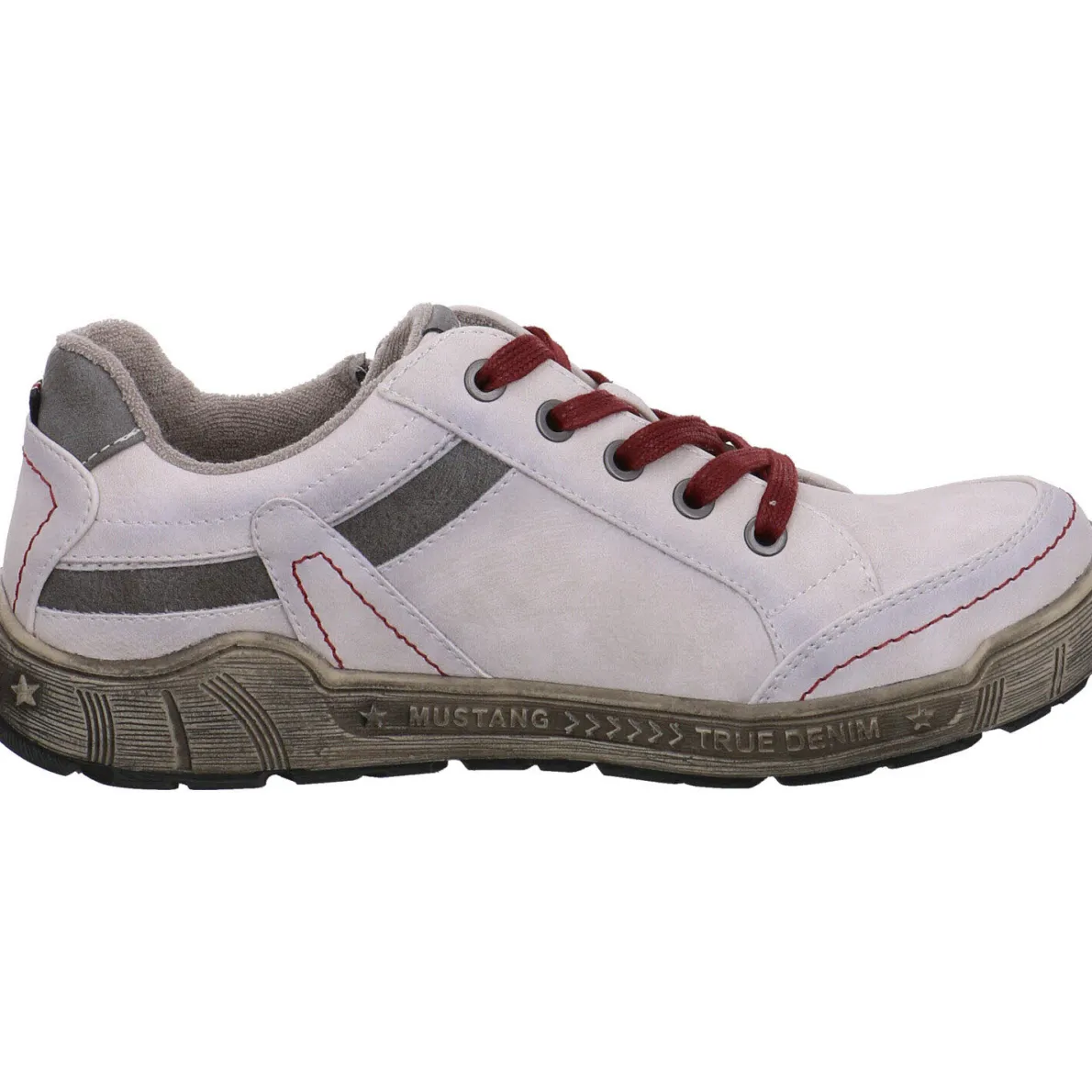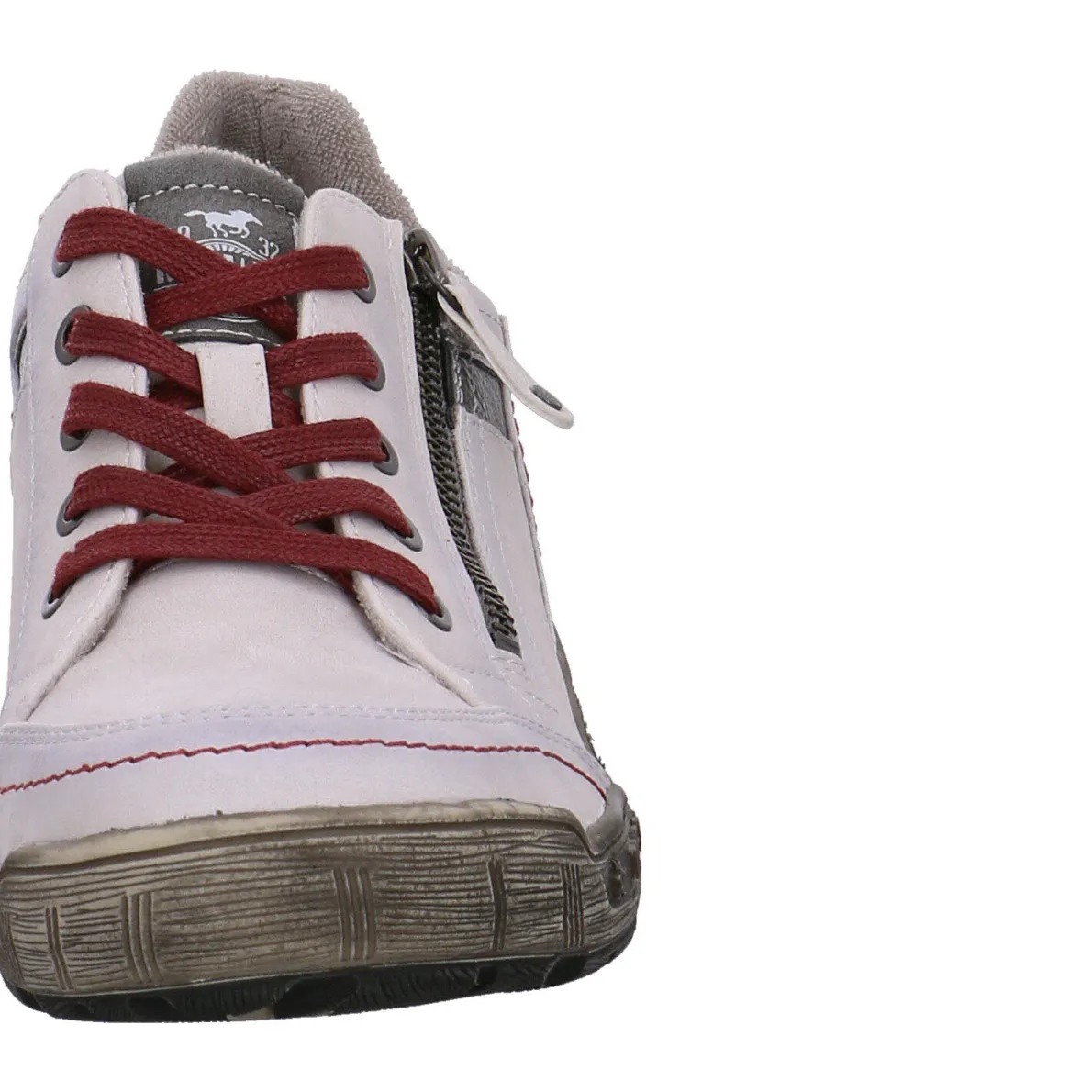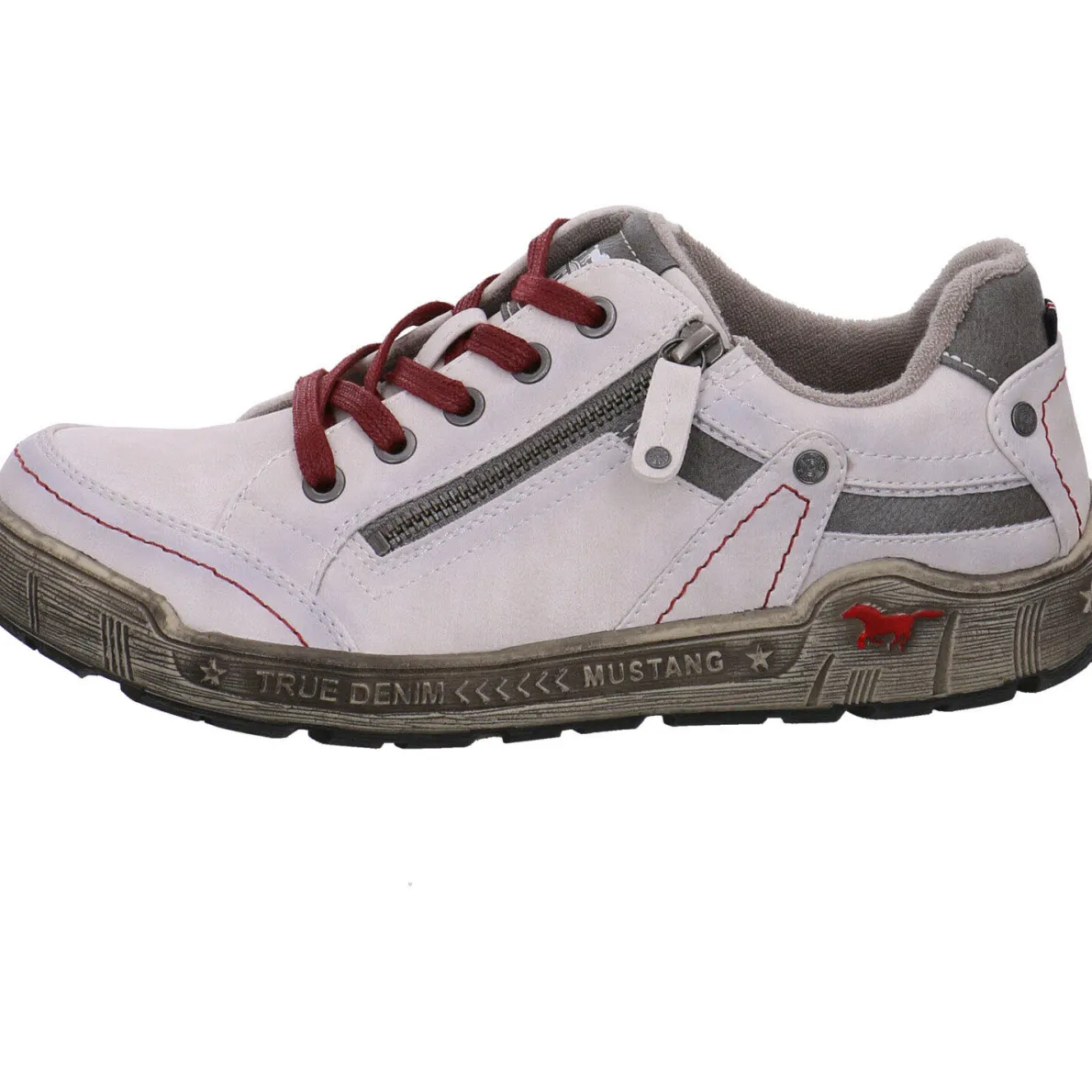 Dieser modische und zugleich sportliche Damen Schnürschuh in Weiß und Grau von Mustang ist aus hochwertigem Kunstleder gefertigt. Für eine optimale Passform sorgen die regulierbare 5-Loch-Schnürung in Rot und der seitliche Reißverschluss, sowie die gepolsterte Einstiegskante. Gekonnt platzierte Ziernähte sowie eine rutschfeste Gummisohle im angesagten Used Look runden das moderne Design ab.