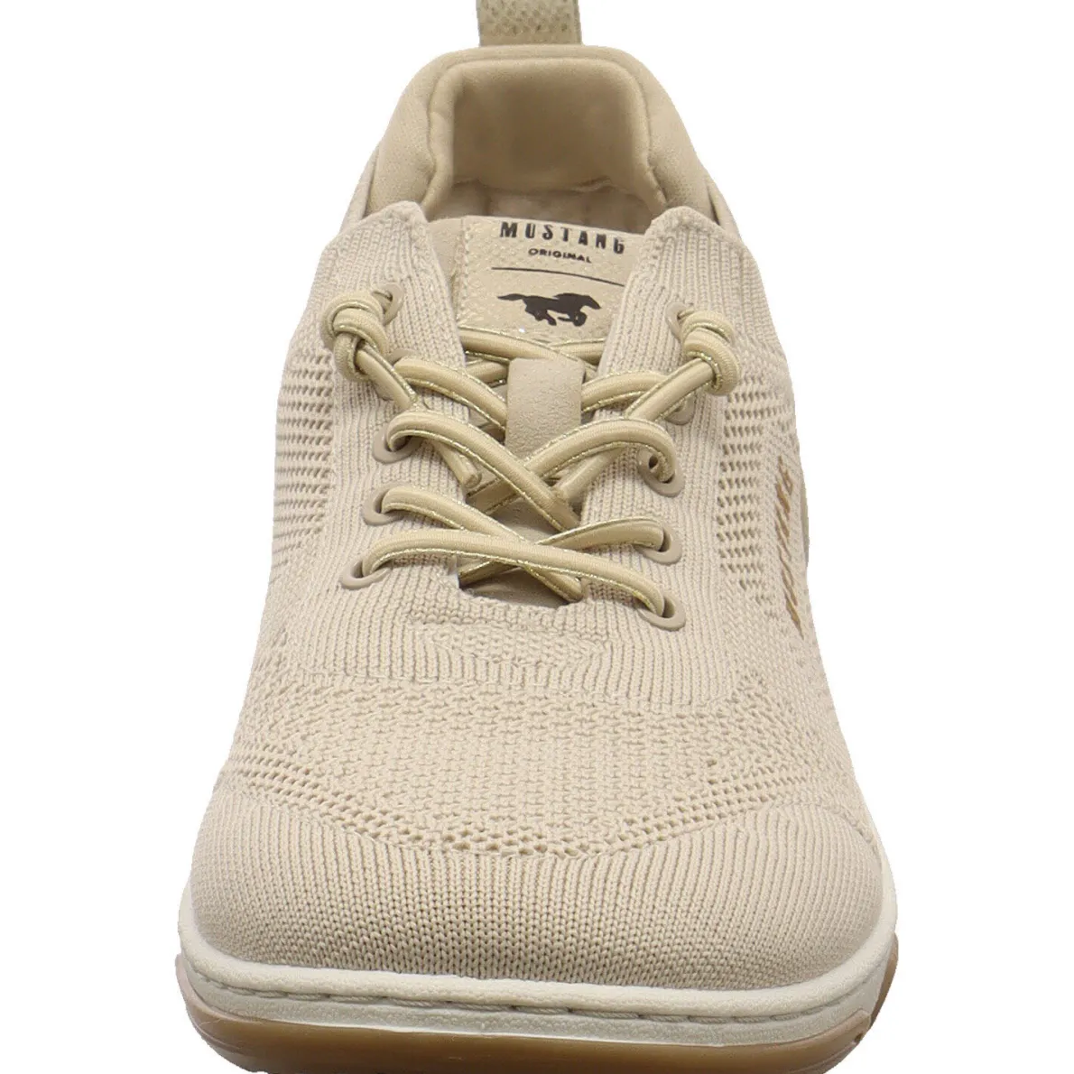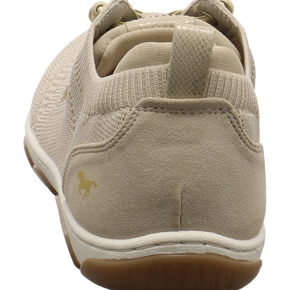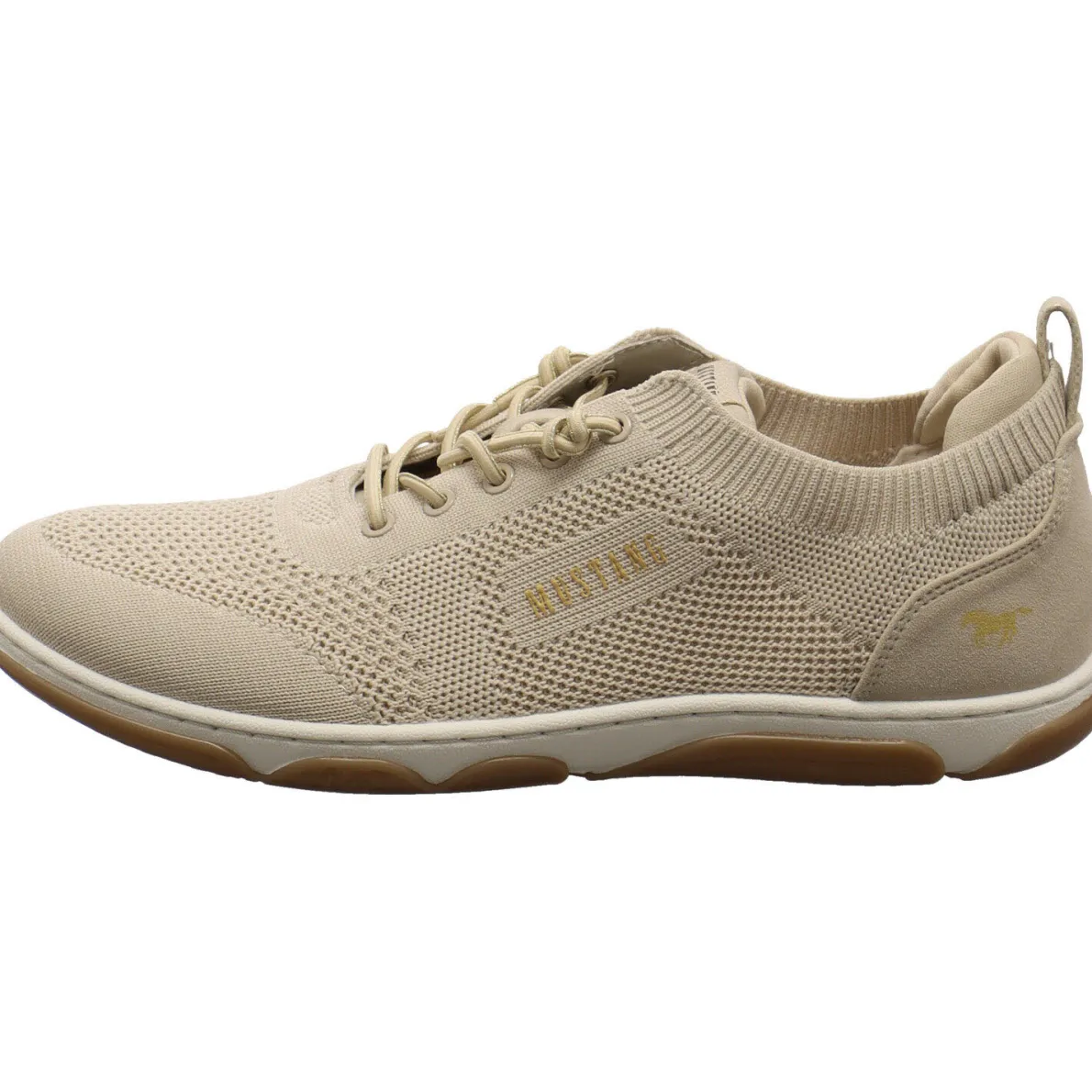 Perfekt für den Alltag ist dieser schöne Damen Schnürschuh von Mustang. Das Obermaterial in Beige begeistert durch seine Strick Optik. Die perfekte Mischung aus Textil und Synthetik machen den Schuh angenehm leicht und super flexibel. Der sockenähnliche Schaft ist angenehm weich und durch die Lasche und die Gummischnürung kommst du ganz leicht in den Schuh. Das lästige Schleife binden, kannst du dir hier auch sparen. Die Gummilaufsohle hat einen guten Grip.
