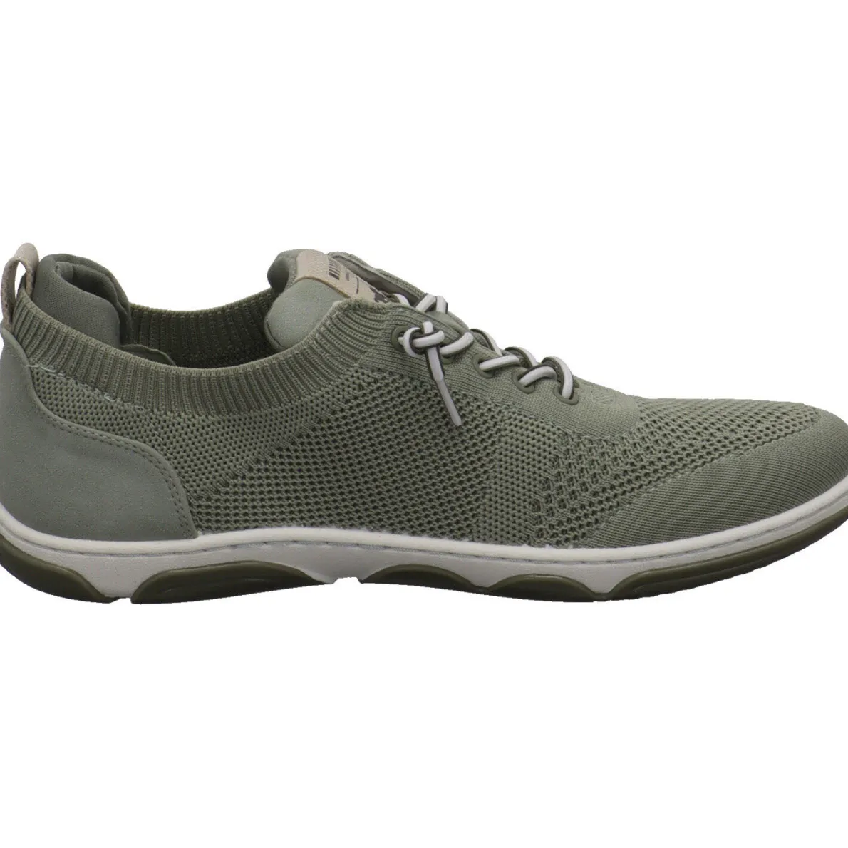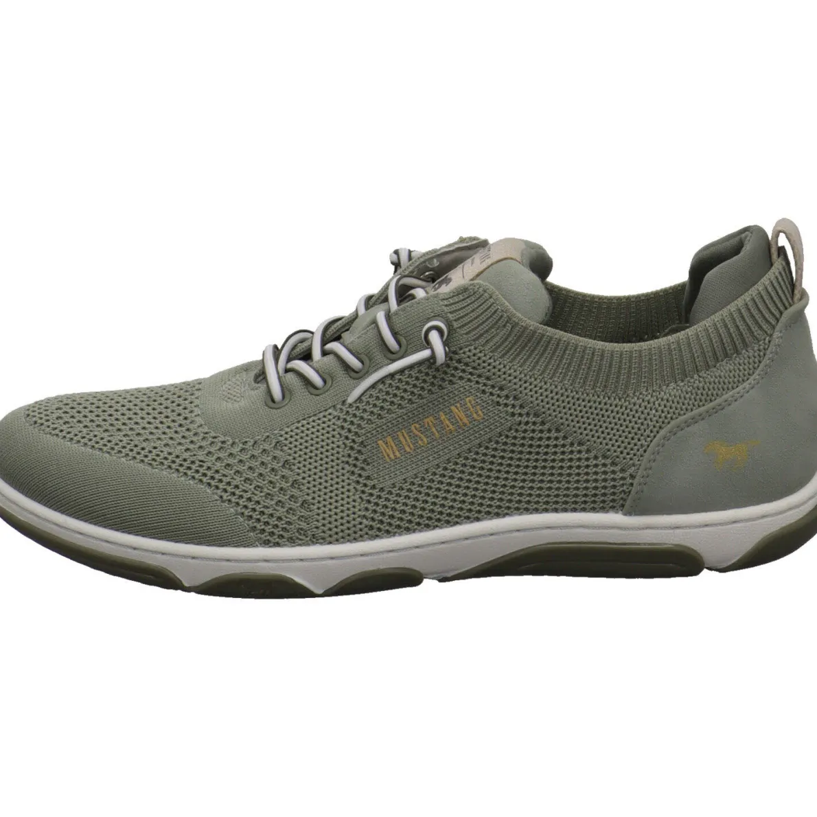 Perfekt für den Alltag ist dieser moderne Damen Schnürschuh von Mustang. Das Obermaterial in Grün begeistert durch seine Strick Optik. Die perfekte Mischung aus Textil und Synthetik machen den Schuh angenehm leicht und super flexibel. Der sockenähnliche Schaft ist angenehm weich und durch die Lasche und die Gummischnürung kommst du ganz leicht in den Schuh. Das lästige Schleifebinden kannst du dir hier auch sparen. Die Gummilaufsohle hat einen guten Grip.