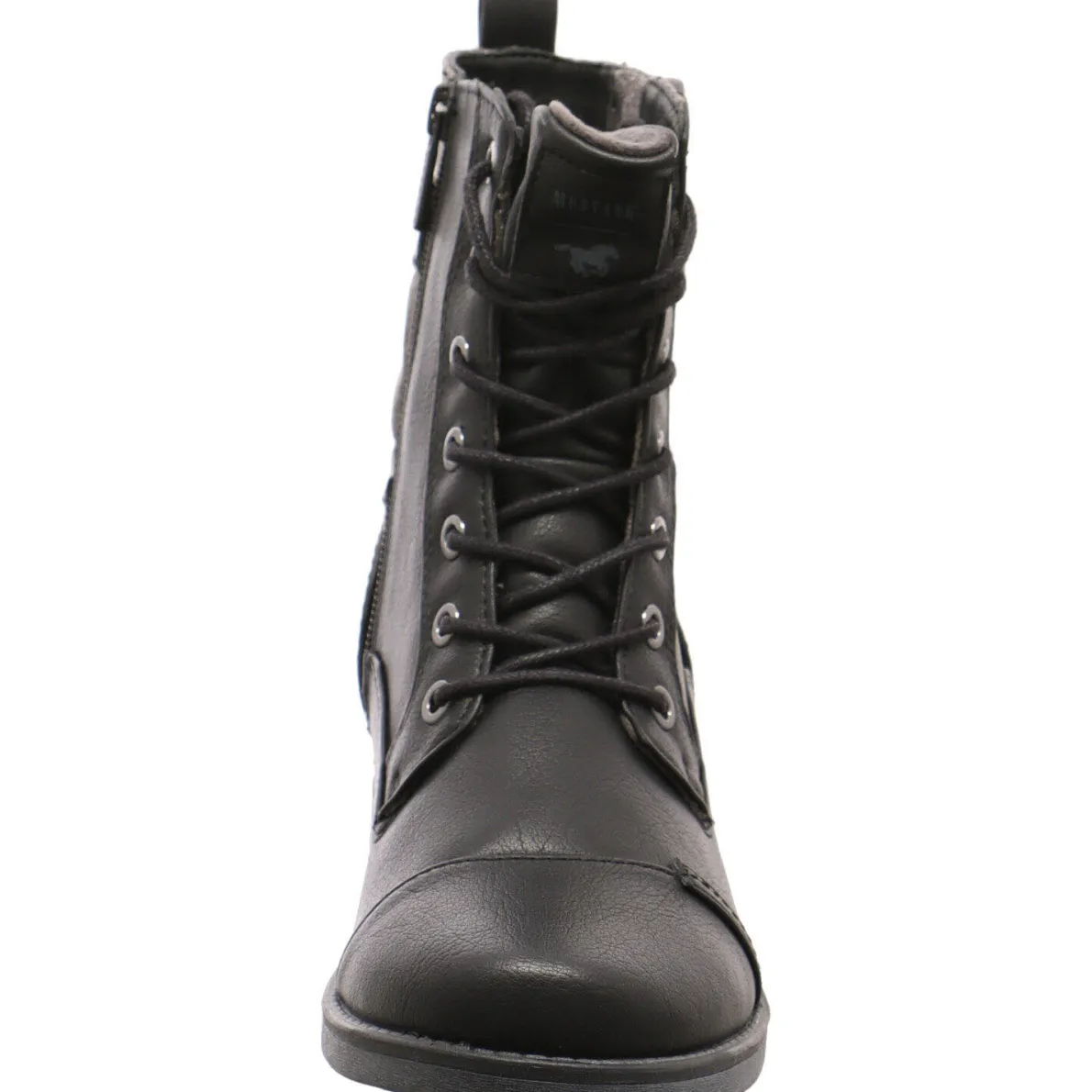 Der Blockabsatz mit einer Höhe von 4 cm sowie die leicht profilierte Laufsohle mit integriertem Mustang-Logo runden das Gesamtkonzept ab.