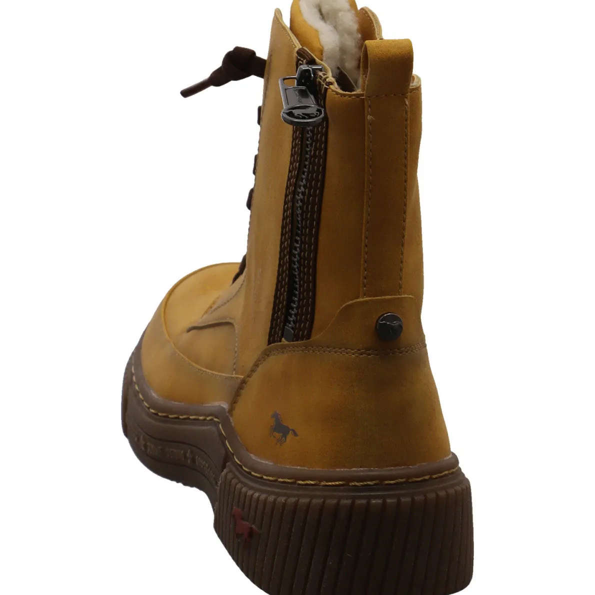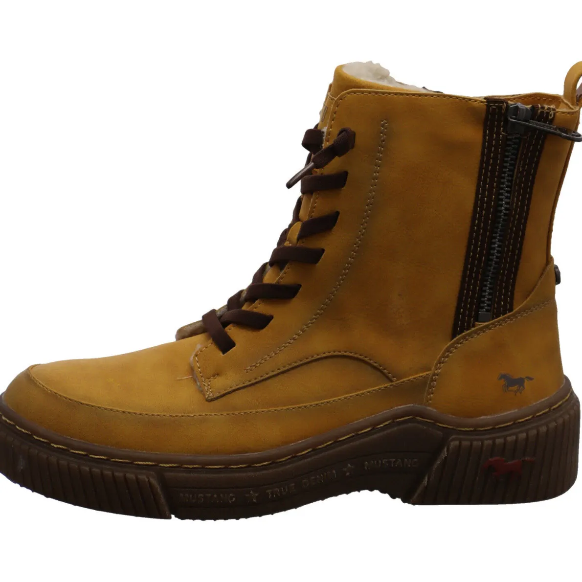 Diese trendige Winter Schnürstiefelette für Damen in Gelb von Mustang überzeugt im angesagten Look.