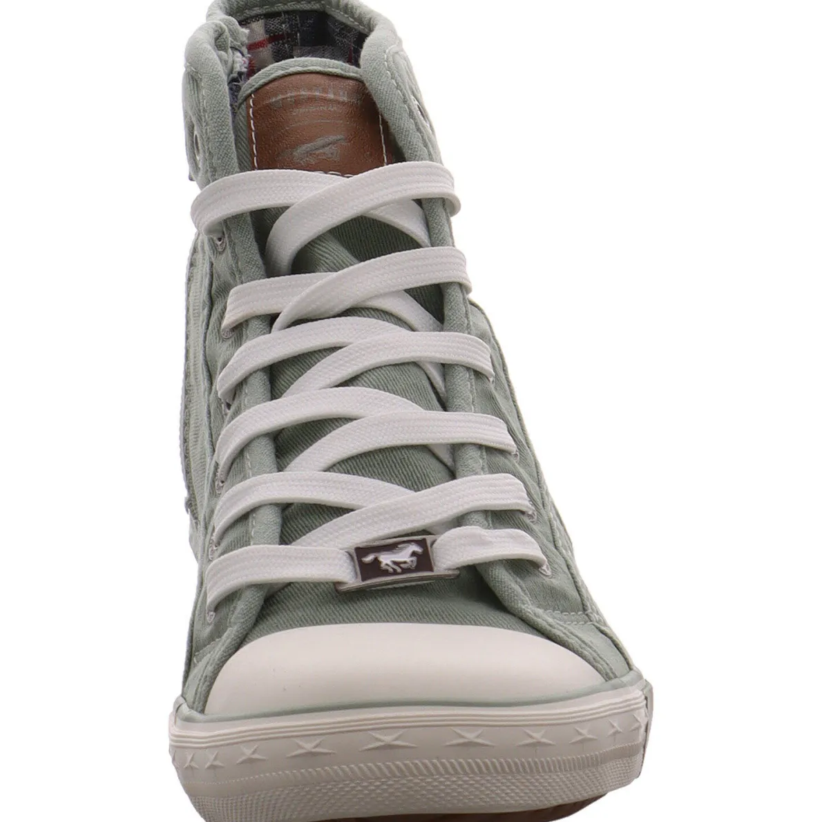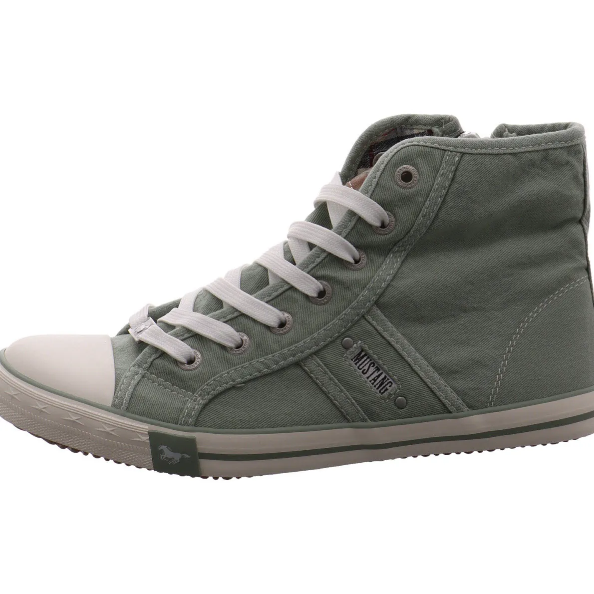 Dieser Damen Hightop Sneaker in Grün von Mustang besticht auf den ersten Blick durch seinen Retro Look. Das Design im Original Mustang-Stil mit auffälligen Ziernähten und das Obermaterial aus Textil im Canvas Look sind absolute Eye-Catcher.