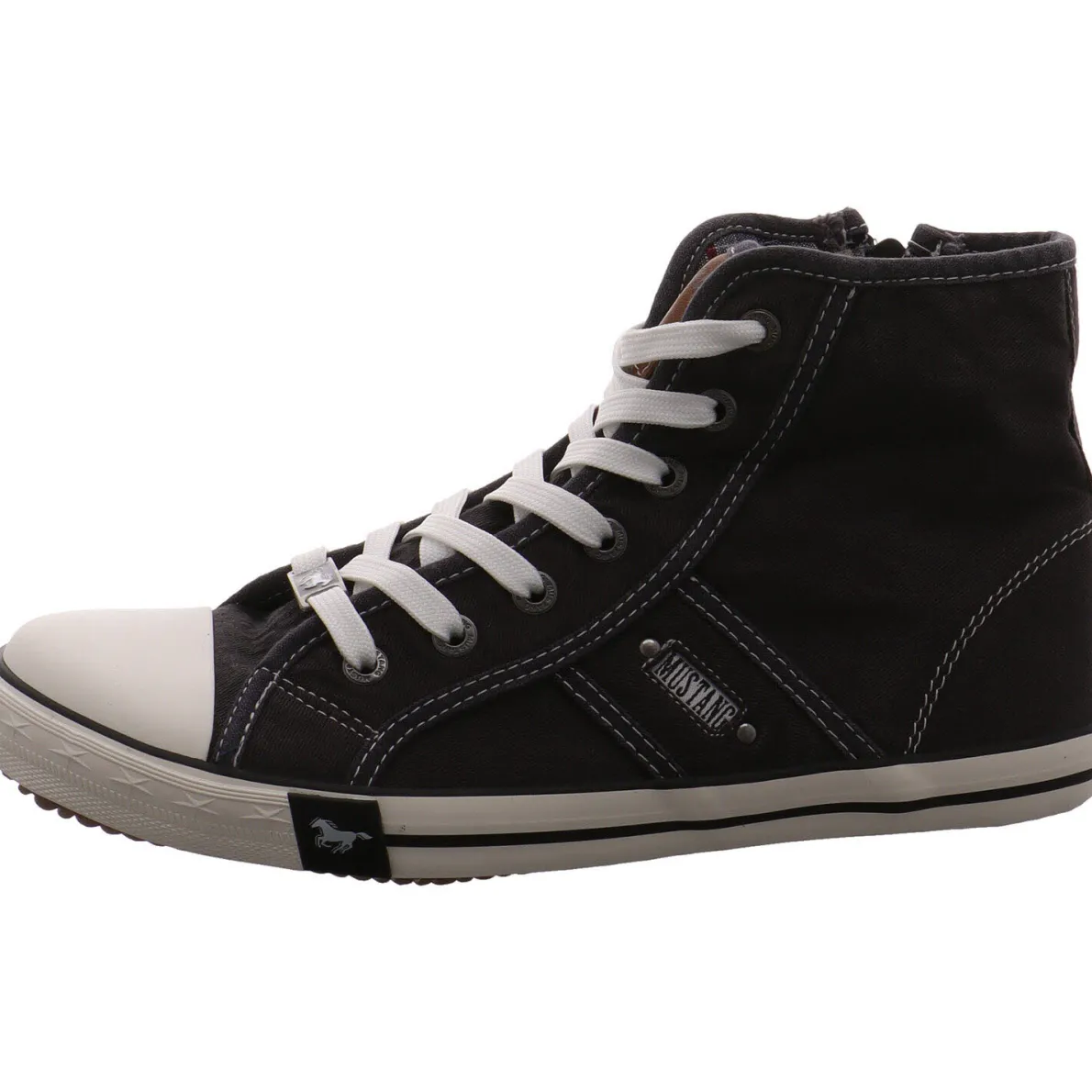 Dieser Damen Hightop Sneaker in Schwarz von Mustang besticht auf den ersten Blick durch seinen Retro Look. Das Design im Original Mustang-Stil mit auffälligen Ziernähten und das Obermaterial aus Textil im Canvas Look sind absolute Eye-Catcher.