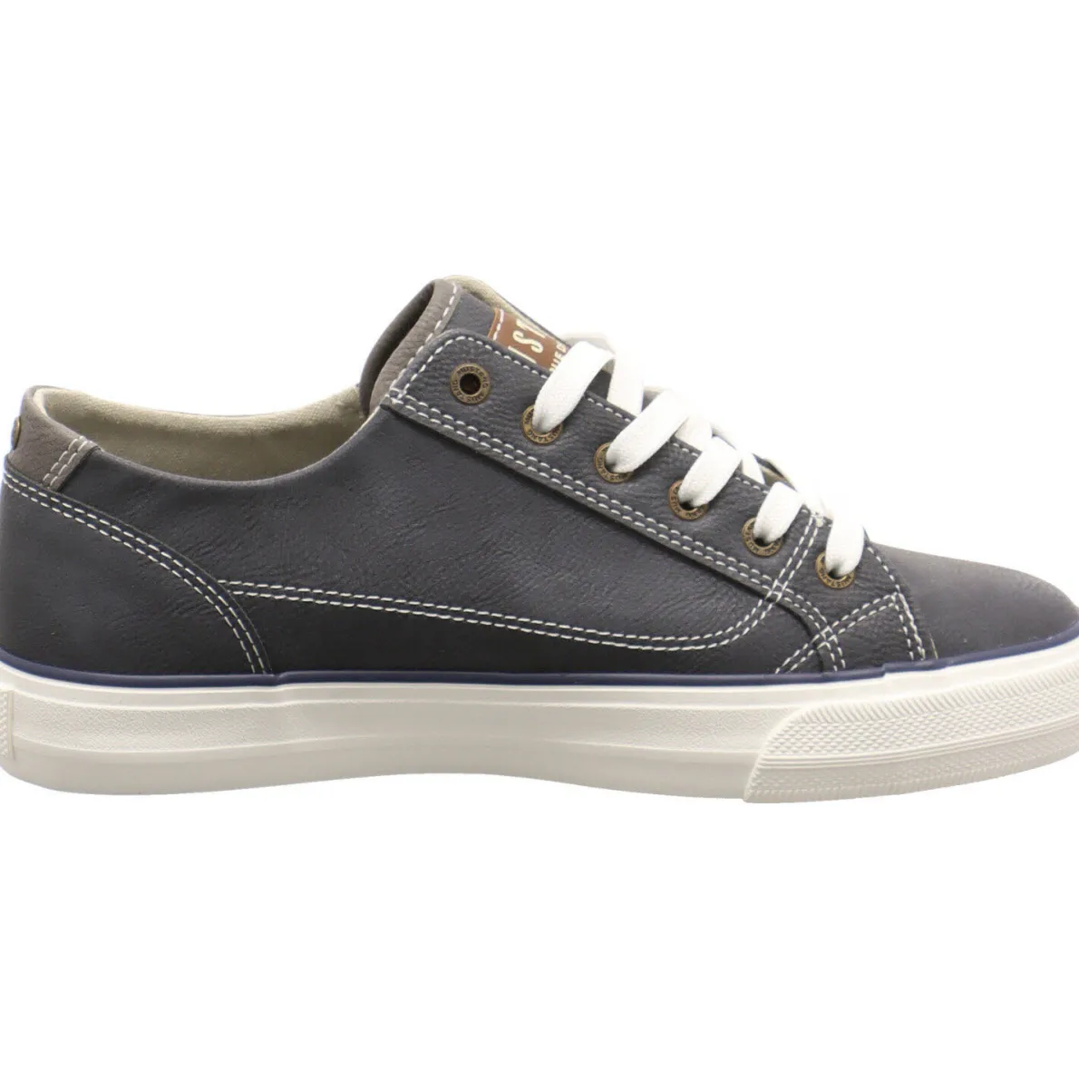 Das Design im Original Mustang Stil mit verschiedenen Logos und Ziernähten und das Obermaterial in Blau aus hochwertigen Kunstleder sind absolute Eyecatcher.