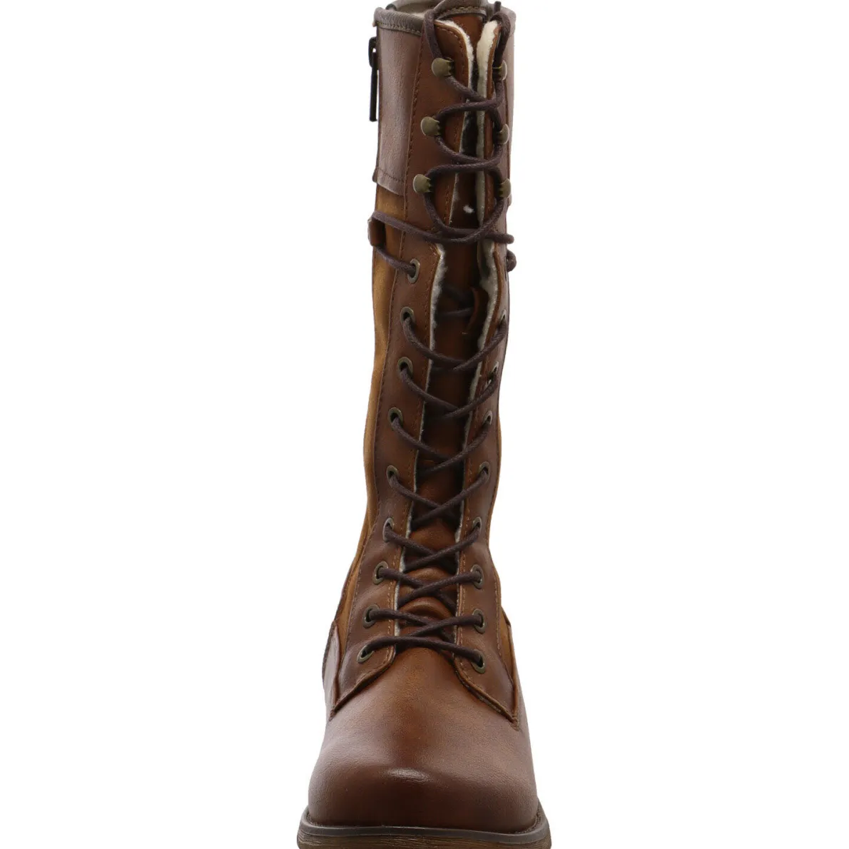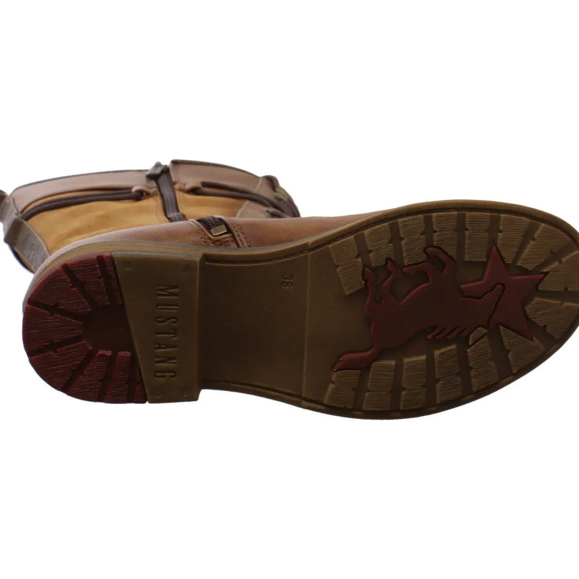Dieser vielseitge Stiefel für Damen aus dem Hause Mustang überzeugt in der kommenden Saison. Das pflegeleichte Obermaterial aus Kunstleder in Braun ist mit verschiedenen Haptiken und Ziernähten in Braun und dem Mustang Markenlogo versehen.